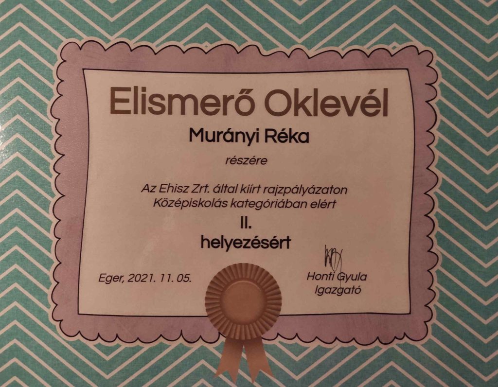 Iskolánkat Murányi Réka, 11.d osztályos tanuló képviselte, aki rajzával 2. helyezést ért el.