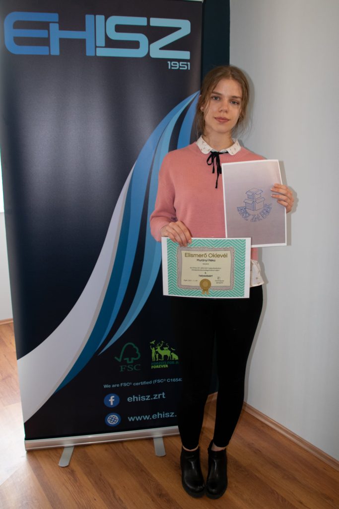 Az egri EHISZ Zrt. pályázatot hirdetett a cég profiljával (hullámkarton csomagolóeszközök gyártása) kapcsolatos különböző témákban (óvodás, ill. általános és középiskolás kategóriában). A középiskolás feladat a cég logójának újratervezése volt.
