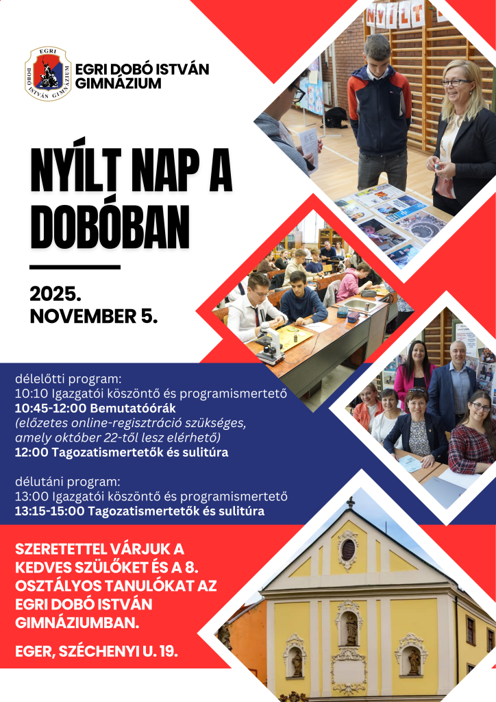 A 2025. november 5-i nyílt nap bemutató óráira való regisztráció lezárult, az óráink elérték a maximális látogatási létszámot.