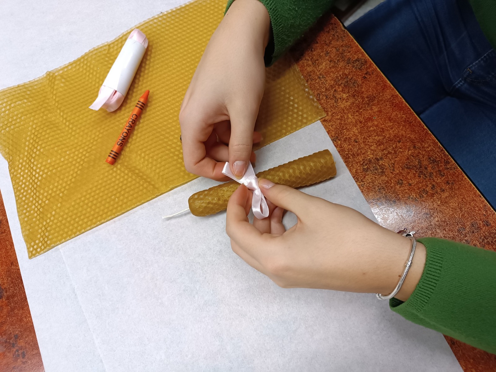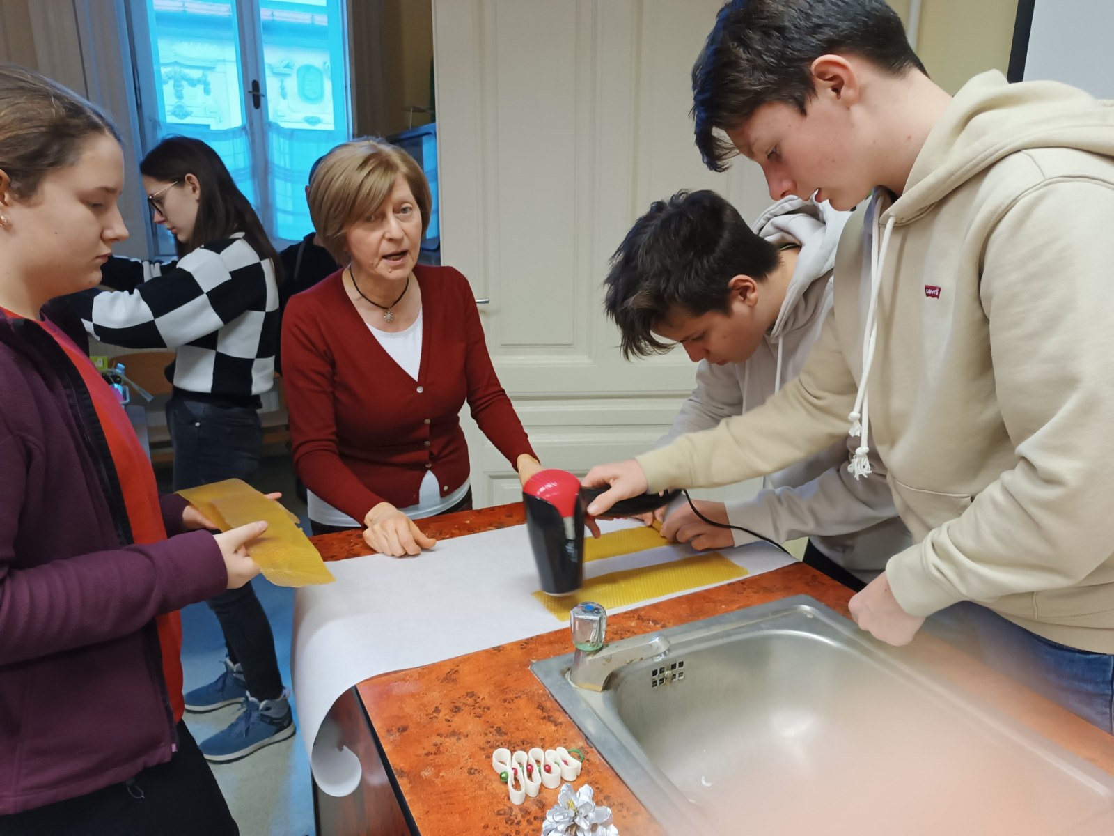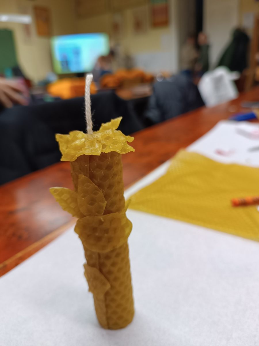 A TT Műhely december 12-ei foglalkozásán a négy gyertya meséjén keresztül emlékeztünk meg az adventi gyertyagyújtás hagyományáról, a négy gyertya szimbólumáról. Megtudtuk, hogyan lehet különböző technikával gyertyát készíteni, miből készülnek az alapanyagok. Ezután mi is kipróbáltuk az egyik módszert, méhviaszból készítettünk adventi gyertyákat, amelyeket ünnepi díszbe öltöztettünk. Az elkészült szép munkák, biztosan az ünnepi asztal díszei lesznek majd.
