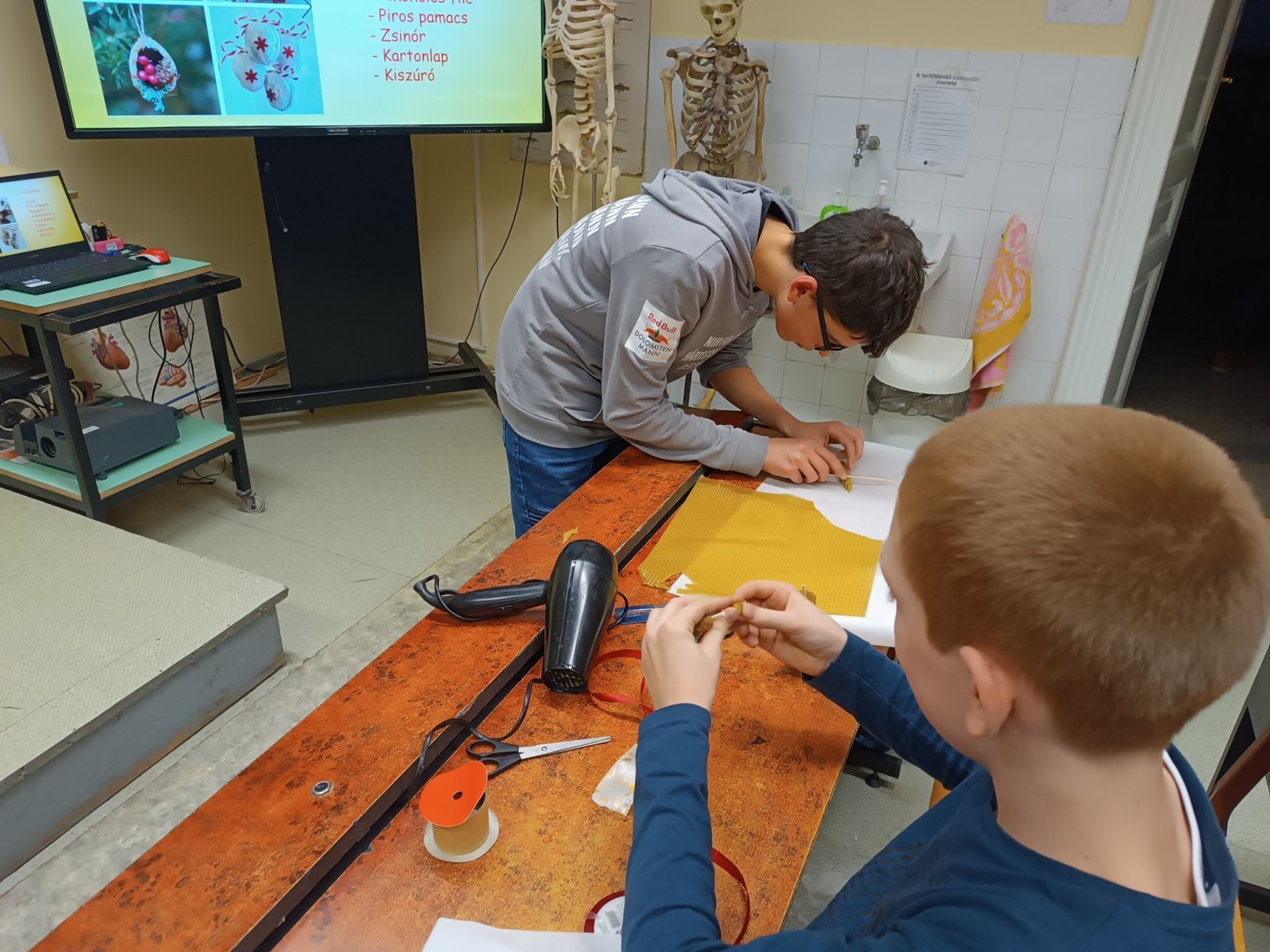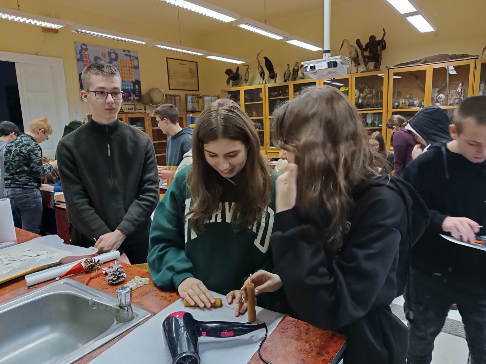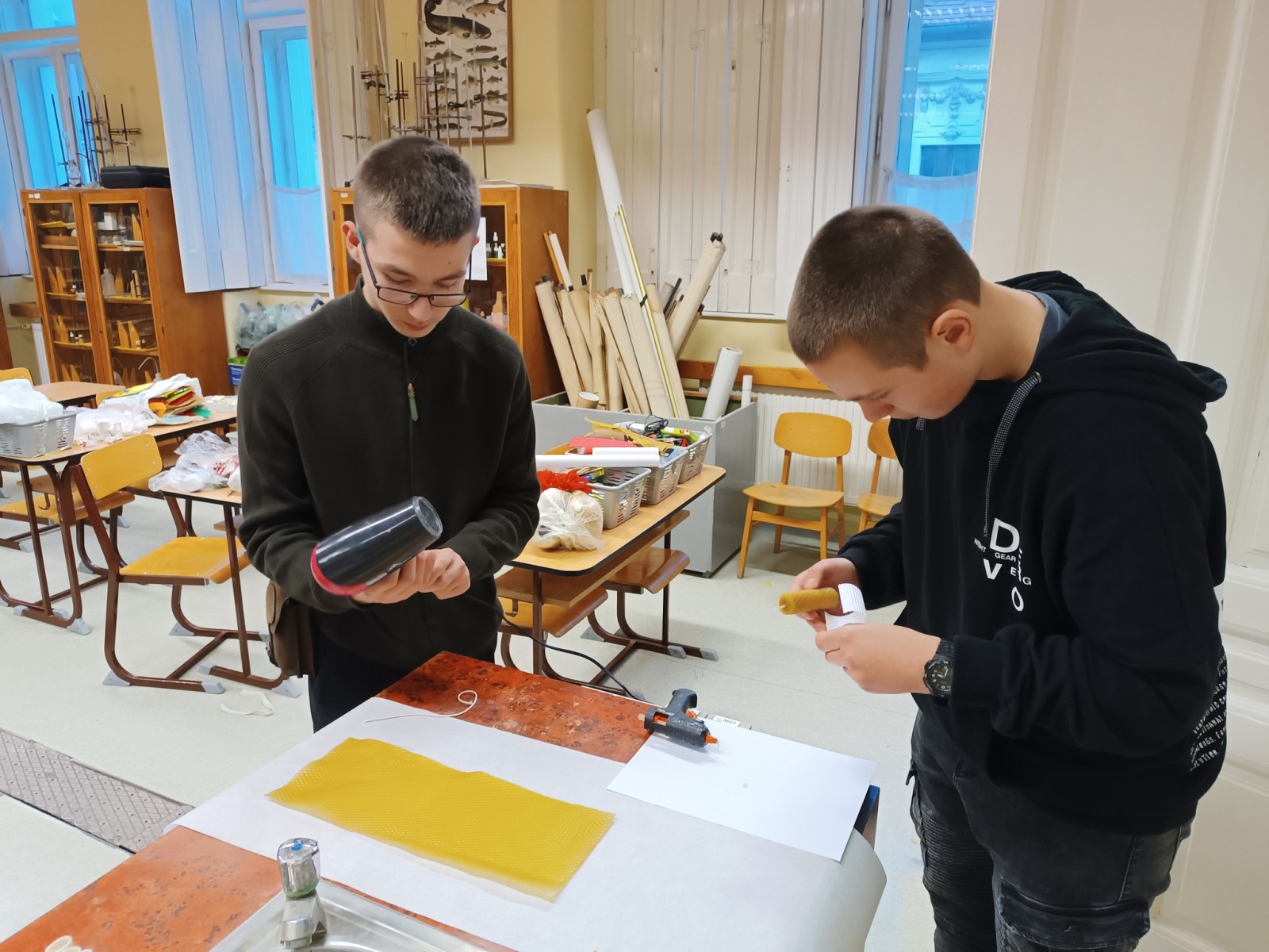 A TT Műhely december 12-ei foglalkozásán a négy gyertya meséjén keresztül emlékeztünk meg az adventi gyertyagyújtás hagyományáról, a négy gyertya szimbólumáról. Megtudtuk, hogyan lehet különböző technikával gyertyát készíteni, miből készülnek az alapanyagok. Ezután mi is kipróbáltuk az egyik módszert, méhviaszból készítettünk adventi gyertyákat, amelyeket ünnepi díszbe öltöztettünk. Az elkészült szép munkák, biztosan az ünnepi asztal díszei lesznek majd.