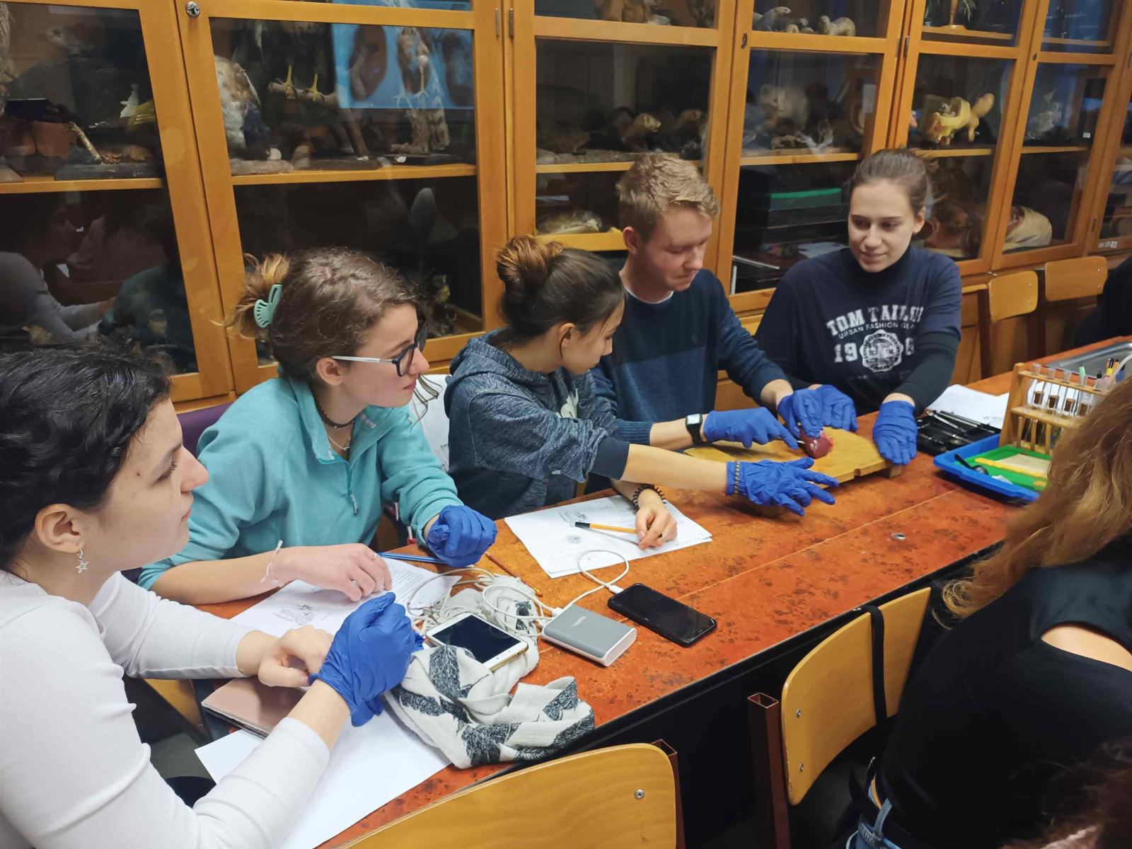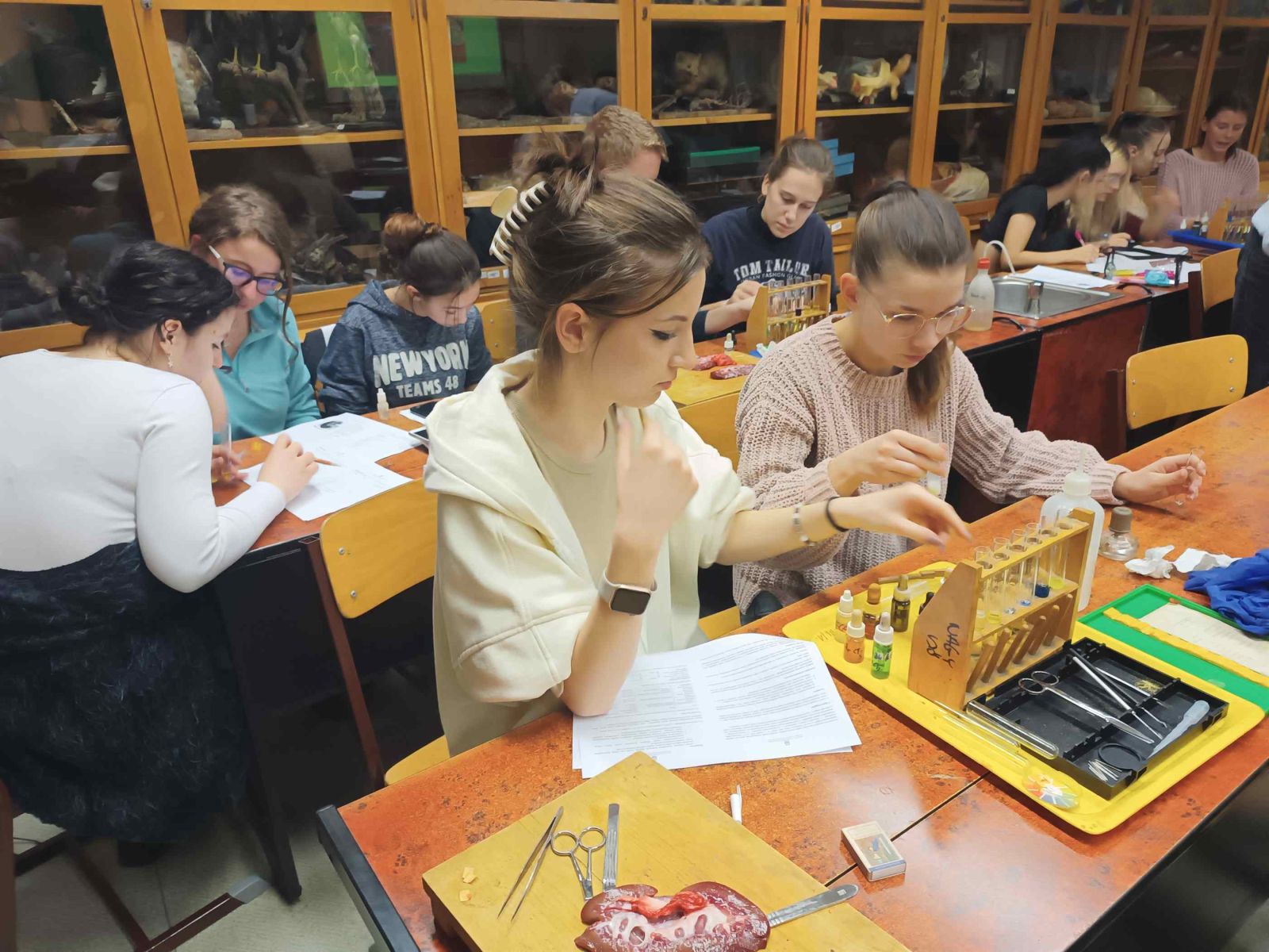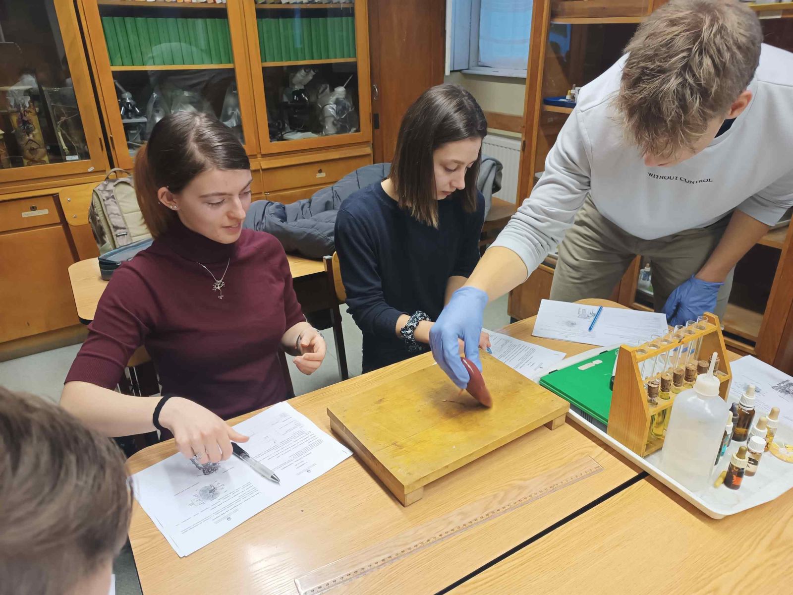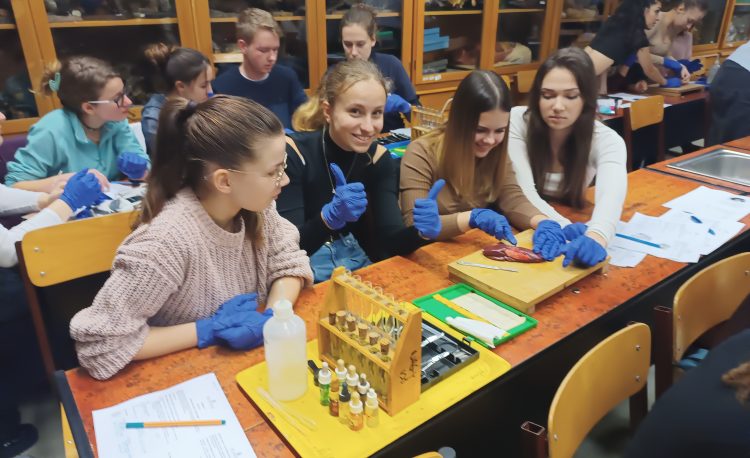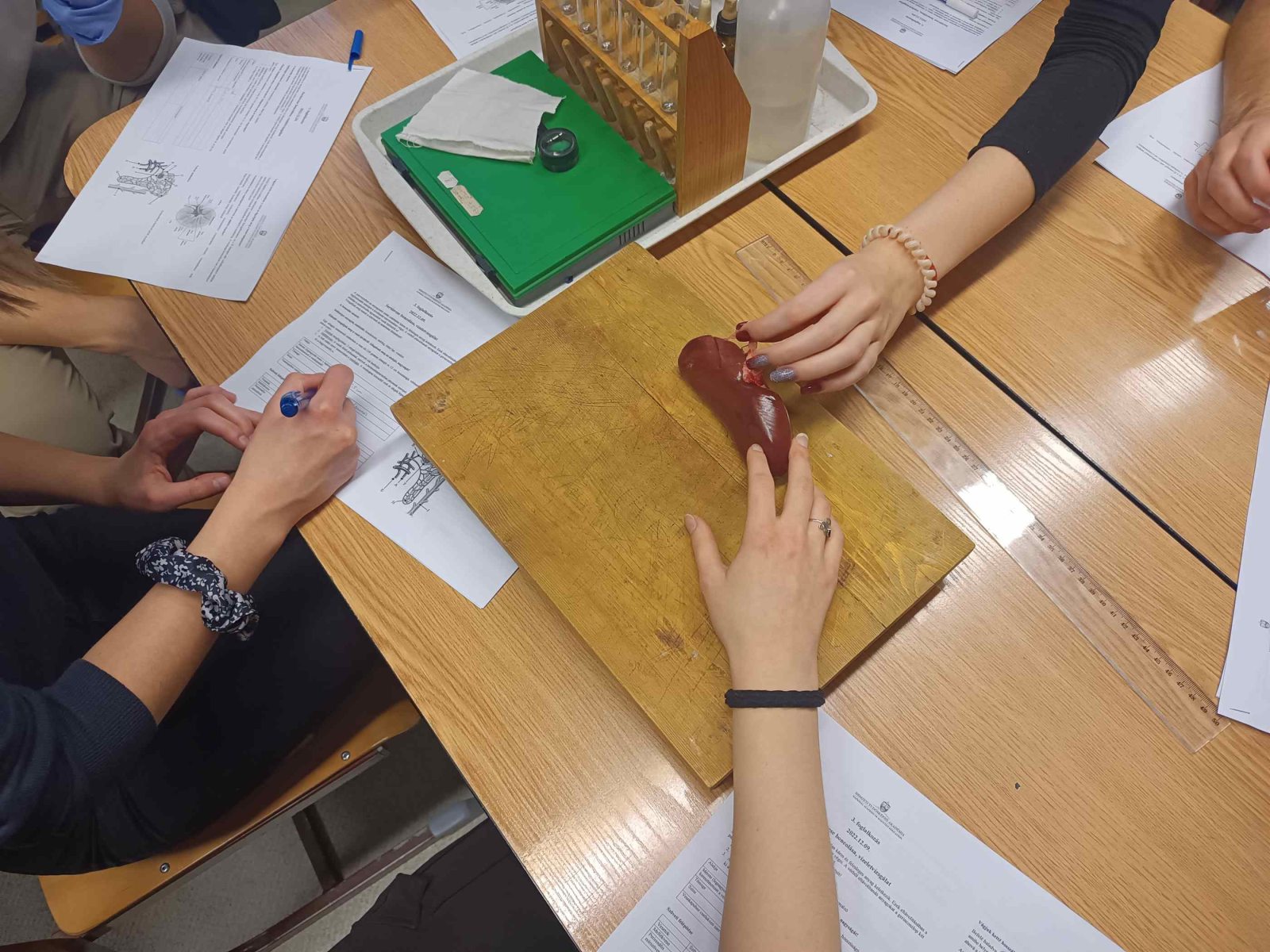 Nagy érdeklődés követte a Nemzeti Tudósképző Akadémia idei utolsó, december 9-ei foglalkozását, amelynek témája az ember kiválasztó szervrendszerének megismerése volt. A kiválasztó működés anatómiai felépítésének és működésének ismétlése után sertésvesét boncoltunk. A külső jegyek, belső szerkezet tanulmányozása után a vesetestecskék működése, a szűrlet képződése és a vizelet összetételének megbeszélésére került sor. A tanulók kémiai kísérletekkel egészséges és kóros vizeletben előforduló ionokat, vegyületeket mutattak ki (pl. klorid-ion, foszfát-ion, cukor, fehérje), miközben megbeszéltük, hogy milyen anyagok jelenléte, milyen betegségre utalhat. Végül egy versenyre került sor. A csoportok hat ismeretlen vizeletmintát (sárgára festett oldatot) kaptak és meg kellett határozniuk, hogy melyik lehet desztillált víz, sós víz, normál vizelet, éhező vizelet, hólyaghurutos és gyulladásos vizelet, cukorbeteg vizelet. A legügyesebb csoportok jutalmat kaptak.