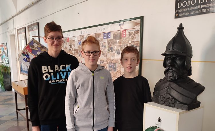 A csapat tagja: Farkas Balázs, Kristó András és Szabó-Medve Boldizsár 7.A osztályos tanulók, felkészítő tanáruk Kovácsné Sipos Ágnes.