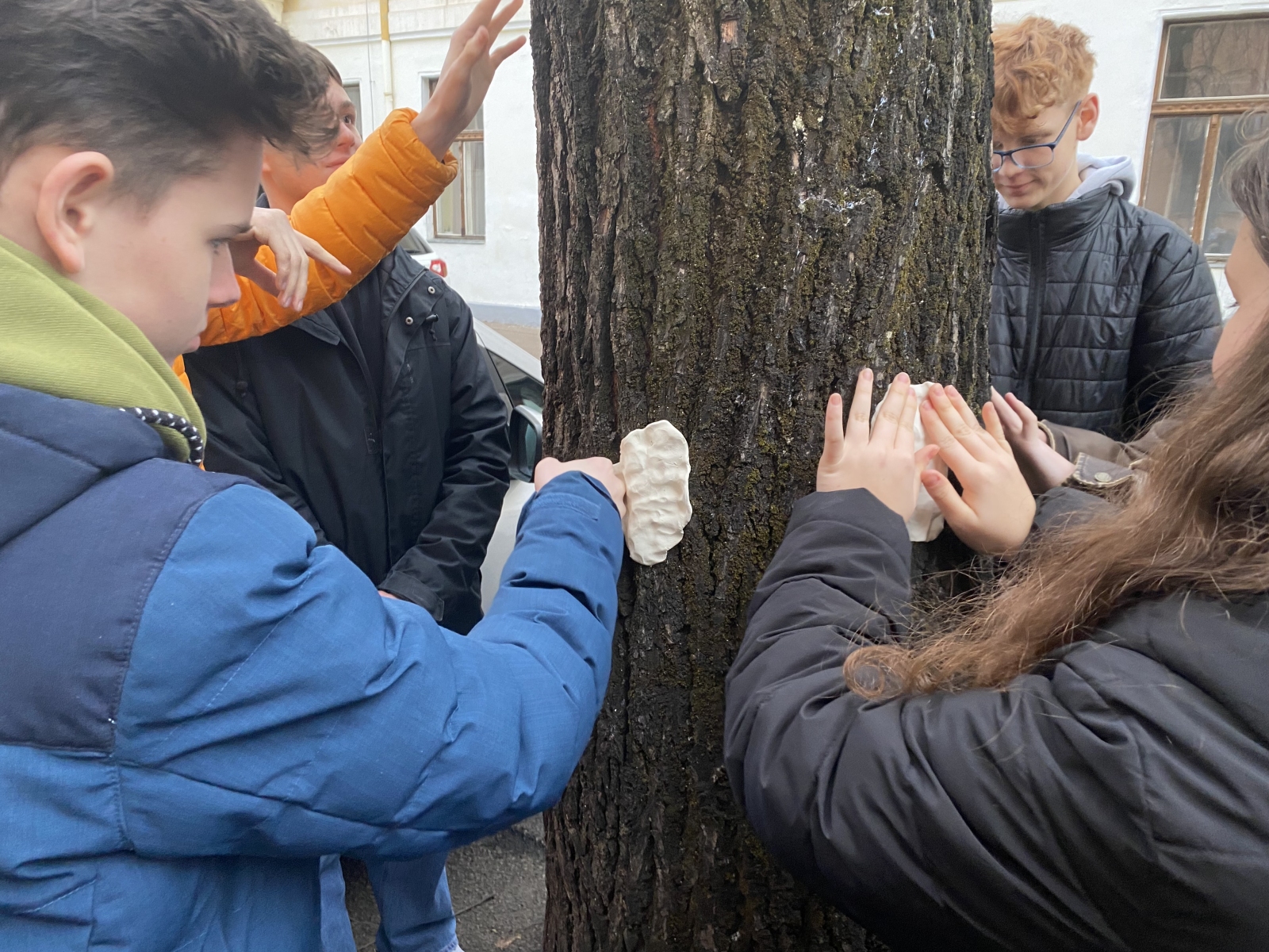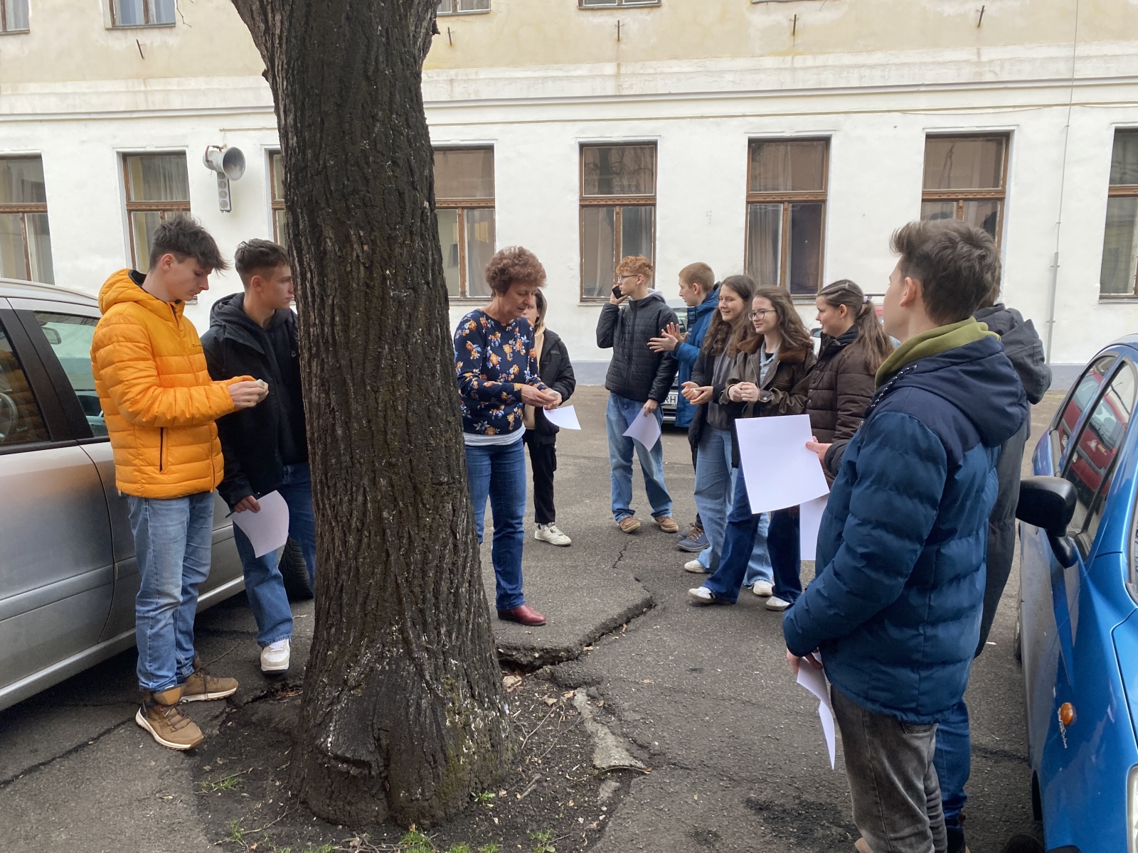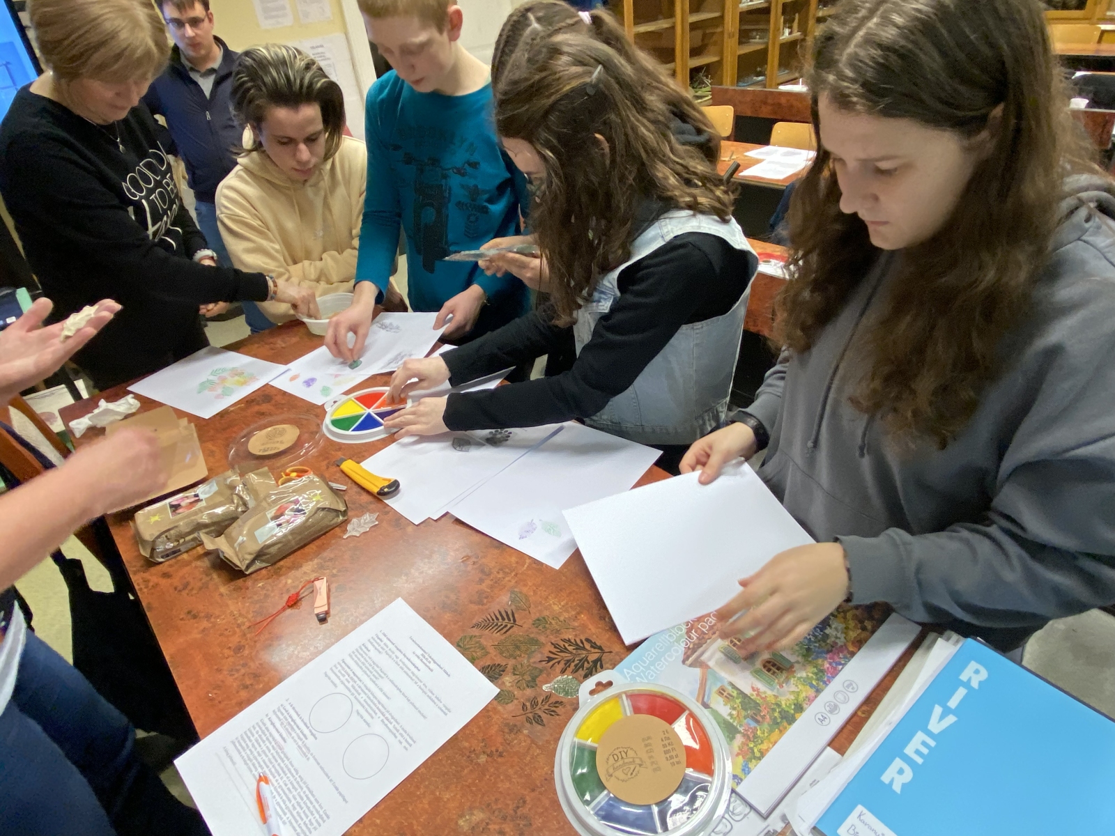 A keddi foglalkozásunkon ismerkedtünk az erdők életközösségeivel, sokféleségével, bonyolult táplálékhálózatával, az élő és élettelen környezet kapcsolatával. Az energiaáramlás során hogyan hasznosítják a fák a fényenergiát és alakítják át szerves anyaggá. A társulás fő alkotói a fák, így megvizsgáltuk mikroszkópban a leveleket, elsajátítva a levélnyúzat készítését. Az iskolaudvaron lévő fán kéregnyomatot készítettünk gipszöntéssel, satíroztuk a kérget és az erdőben gyűjtött leveleket. Lehetőség volt egy kis kreativitásra is levélkép és levélmedál készítésével.