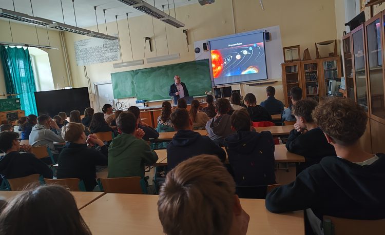 Iskola: Egri Dobó István Gimnázium (OM031599)Helyszín: EgerIdőpont: 2025. október 02.Előadó: Dr. Szabó Róbert (csillagász, HUN-REN CSFK Csillagászati Intézet) Az előadás címe: Egyedül vagyunk-e az univerzumban? – Az élet keresése távoli…