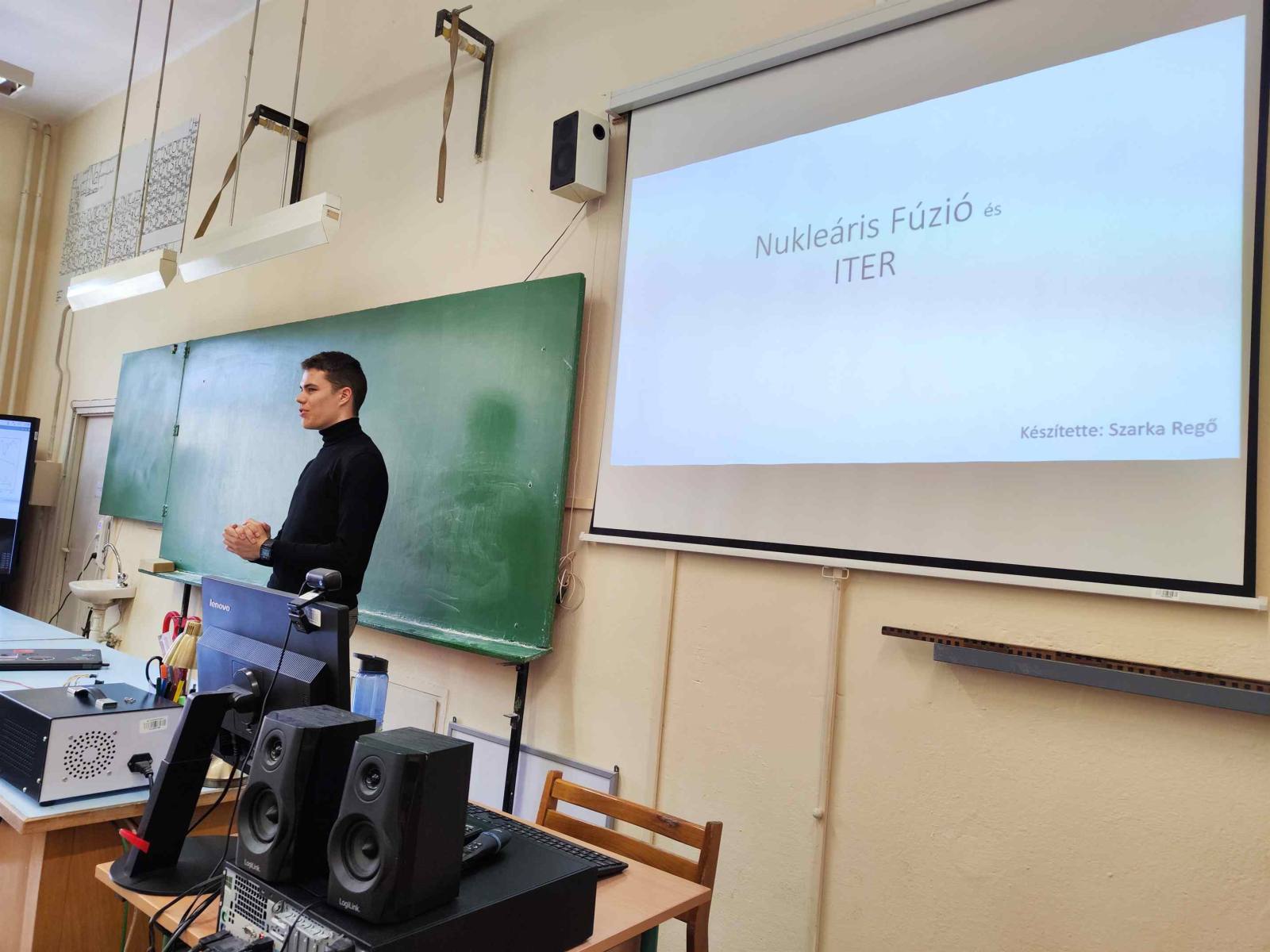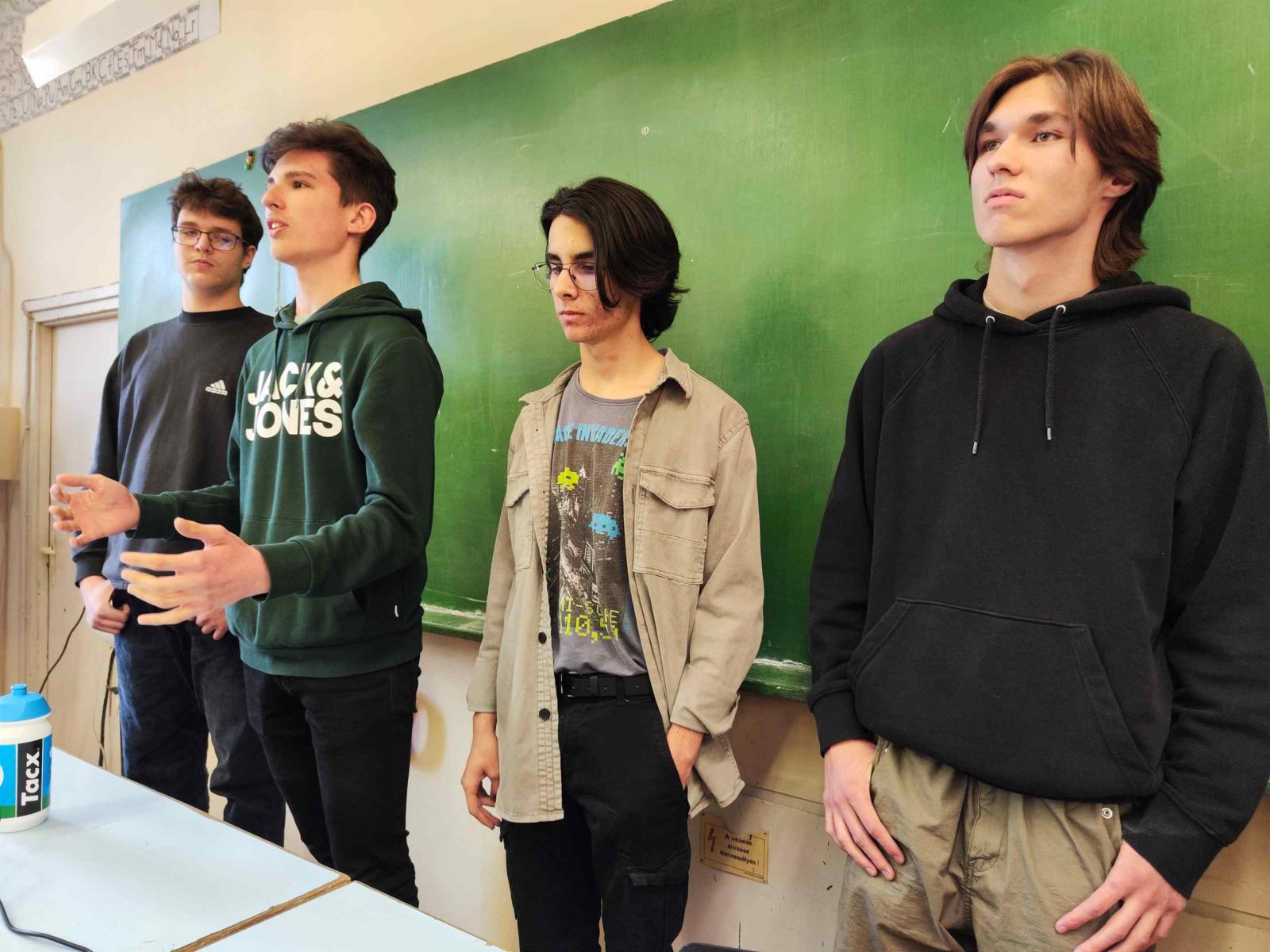 A csapat tagjai: Magyar Gábor Balázs (12.b), Szarka Regő (11.c), Sági Roland (10.a), Győri István, Halmóczki Bence és Antal Levente (9.b) - Szarka Regő (11.c): Nukleáris fúzió és az ITER