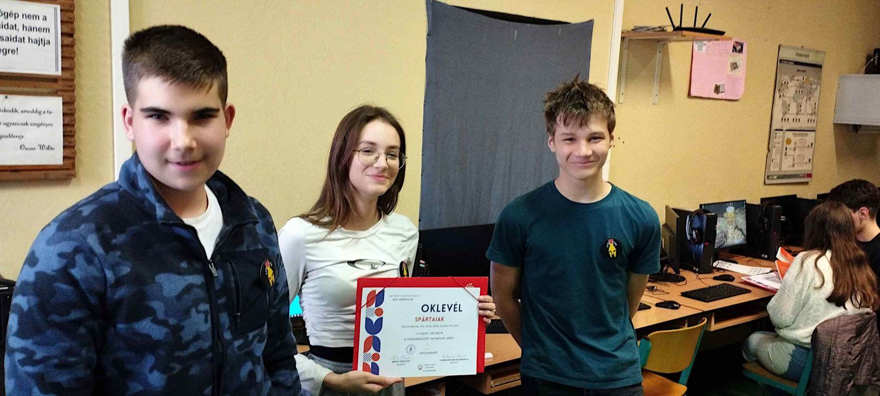 A Digitális Témahét záró eseménye már hosszú évek óta mindig a DobóNet verseny. Idén sem volt másképp. Március 24-én volt határidős a verseny első fordulójának teljesítésére egy logó tervezése (amiből kitűző készült), valamint egy prezentáció készítése a Dr. Who filmsorozat dokijairól. Az idei különlegesség az volt, hogy a Canva program segítségével kellett megoldani. Ez a program a március 28-i, pénteki, személyes részvételű versenyfeladatokban is megjelent, az animáció és plakát elkészítésében. A döntőn már csak 3-2 csapat szerepelt a két kategóriában, a jó hangulatú versenyen gyönyörű feladatmegoldások születtek, de a csapatok az algoritmizálásban való jártasságukat is megmutatták.