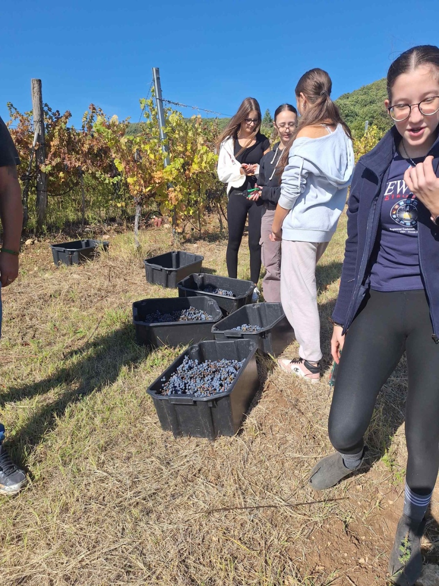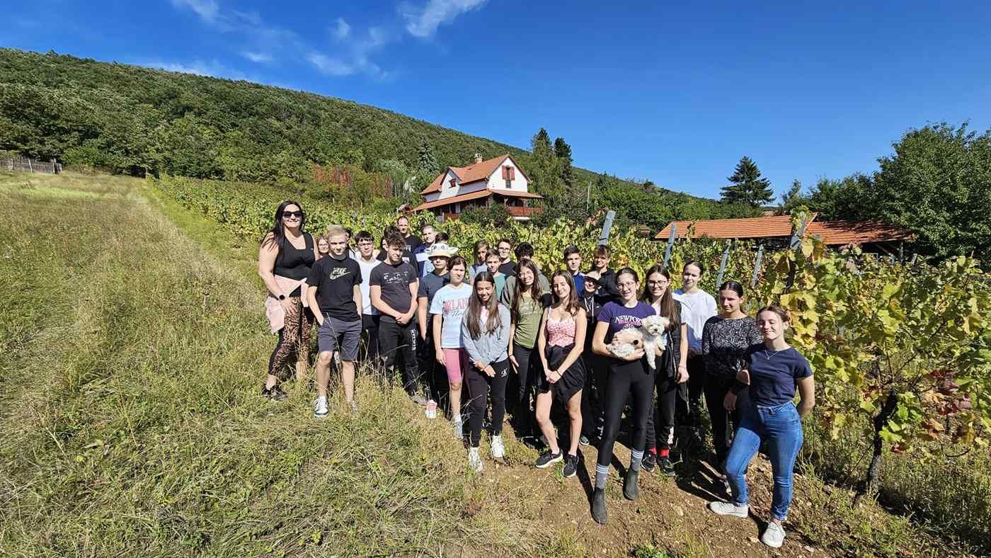 A 9.a osztály csodálatos őszi időben szüretelte le a Daragó családi szőlőbirtokon a novemberi Dobós Alapítványi bál borának alapanyagát. A szorgos kezek nagyon jó hangulatban, fürgén dolgoztak, melynek meglett a szép eredménye, a vörös szőlő hamar a ládákba aztán onnan a pincébe, gondos feldolgozása alá került.