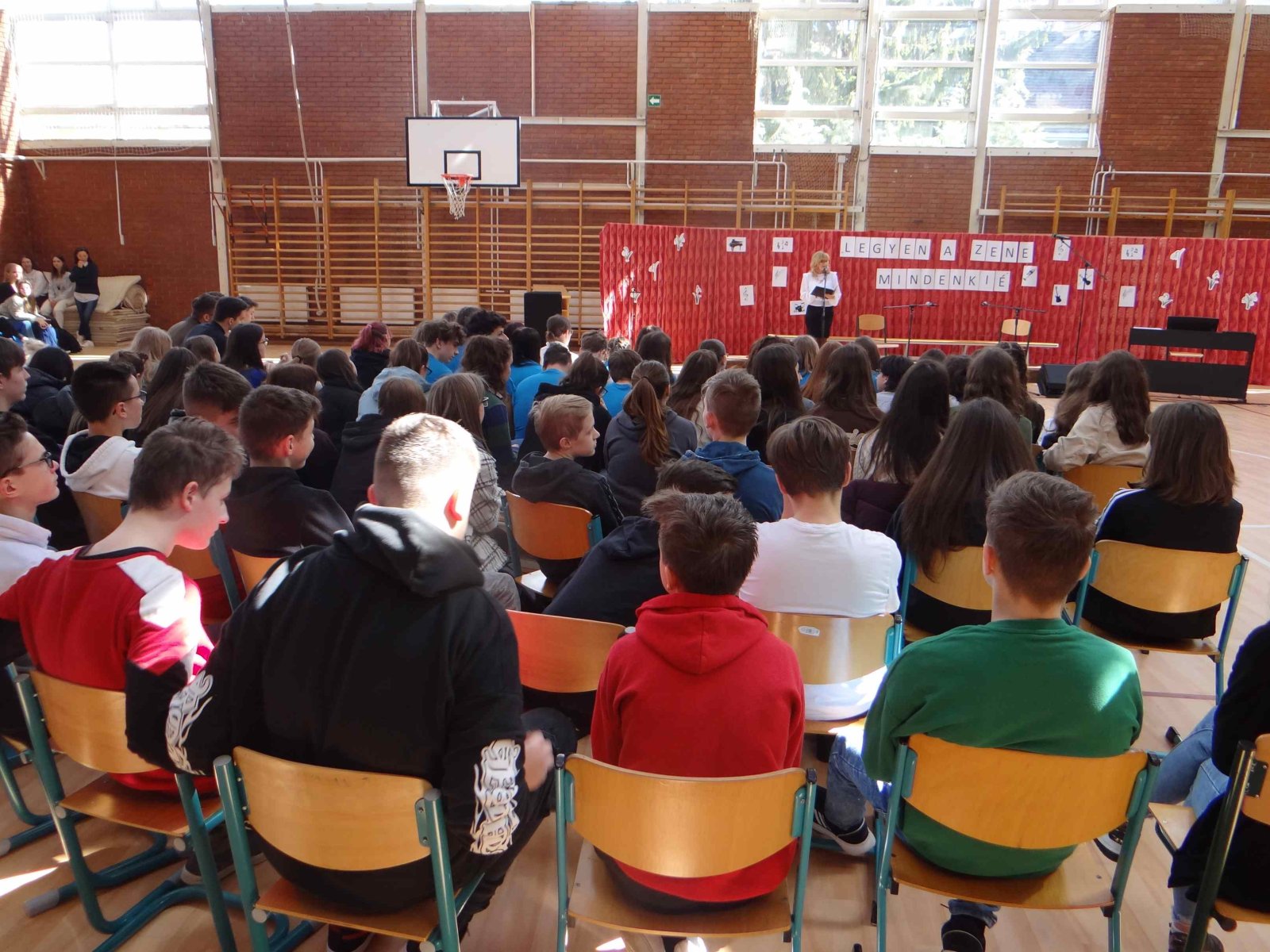 Négy osztály vett részt Esélyórák címmel azon a programon, ahol kerekesszékesek, valamint vakok és gyengénlátók meséltek mindennapi életük kihívásairól és bemutatták segítő kutyáikat. A vendégek a Miskolci Mozgegyletből, a Vakok és Gyengénlátók Sportegyesületéből és a Mondjunk Mancsot Egyesületből érkeztek.