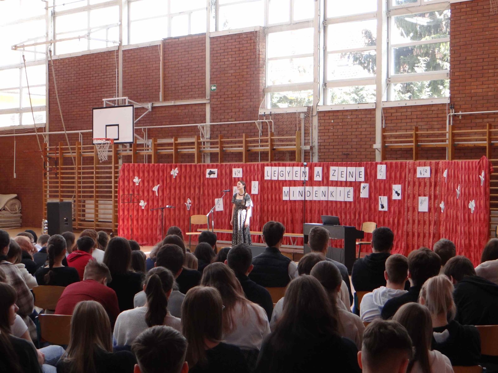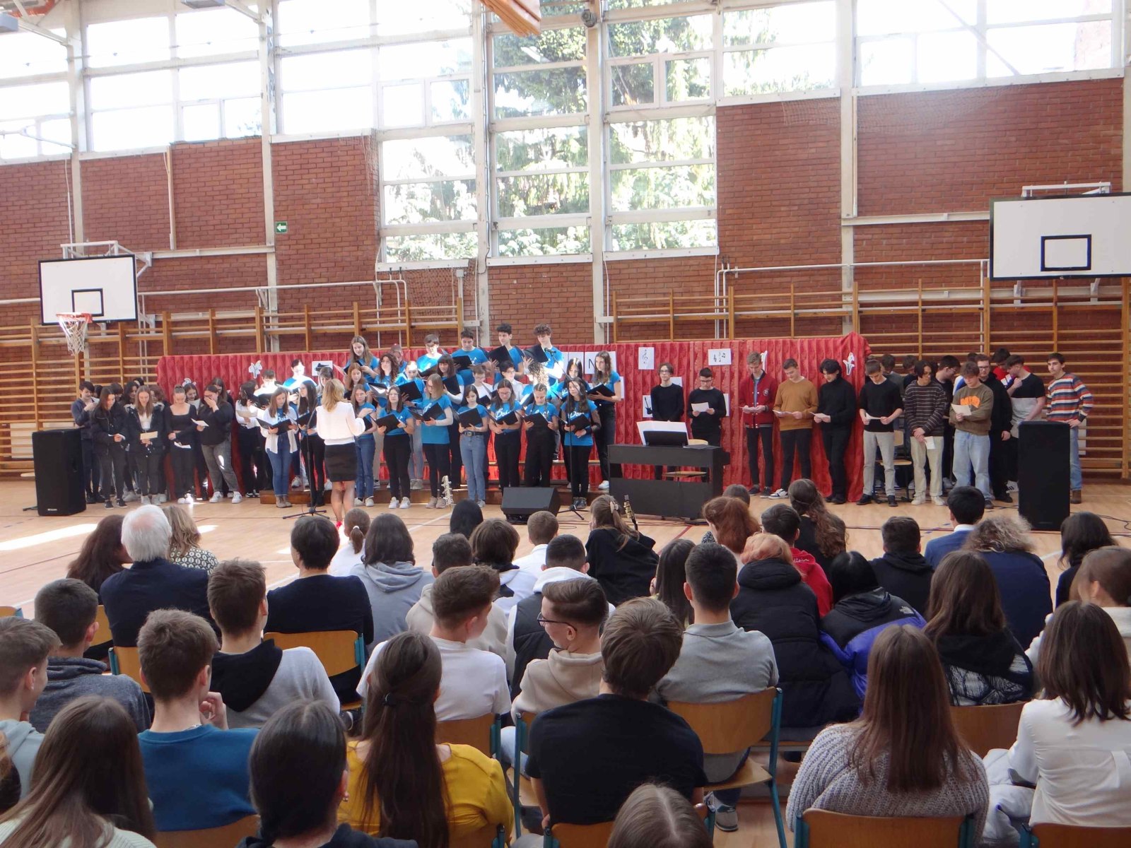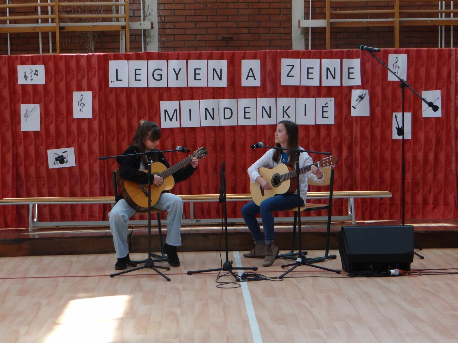 A tornateremben három művészeti előadásra került sor. A Zenedélelőttön Pribéliné Téglás Andrea tanárnő vezetésével mutatkoztak be az iskola közönsége előtt azok a dobósok, akik hangszeren játszanak vagy énekelnek, valamint fellépett az iskolai kórus is.