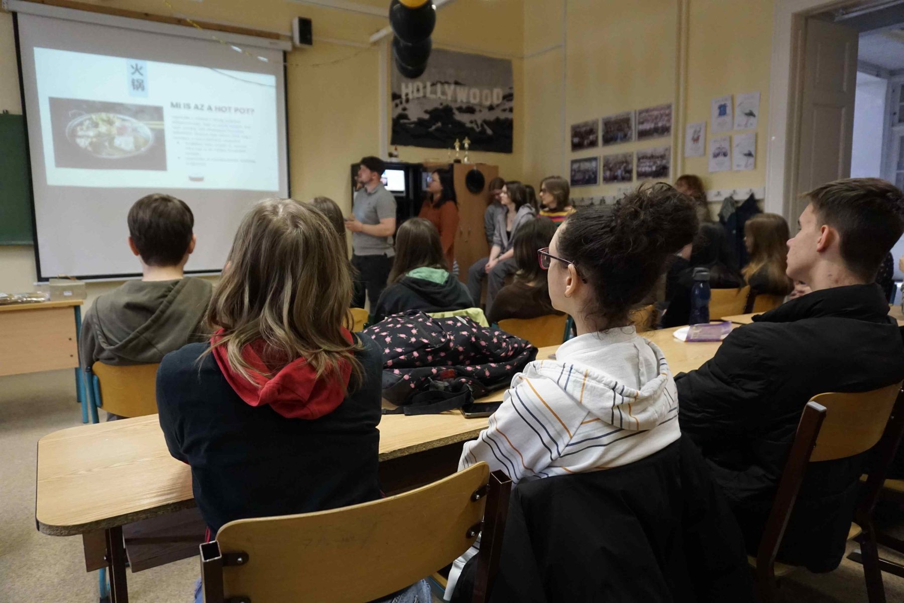Sun Baifang, kínai nyelvet oktató tanárunk is szervezett egy programot, melynek címe ,Ismerd meg Kínát!’ volt. Több diákelőadó mesélt erről a távol-keleti hatalmas országról: Gyetvai Kata (9.a), Bodnár Anna (10.a), Balogh Luca Borka (9.b), Gál Máté Barnabás és Kiss Regina (11.a).