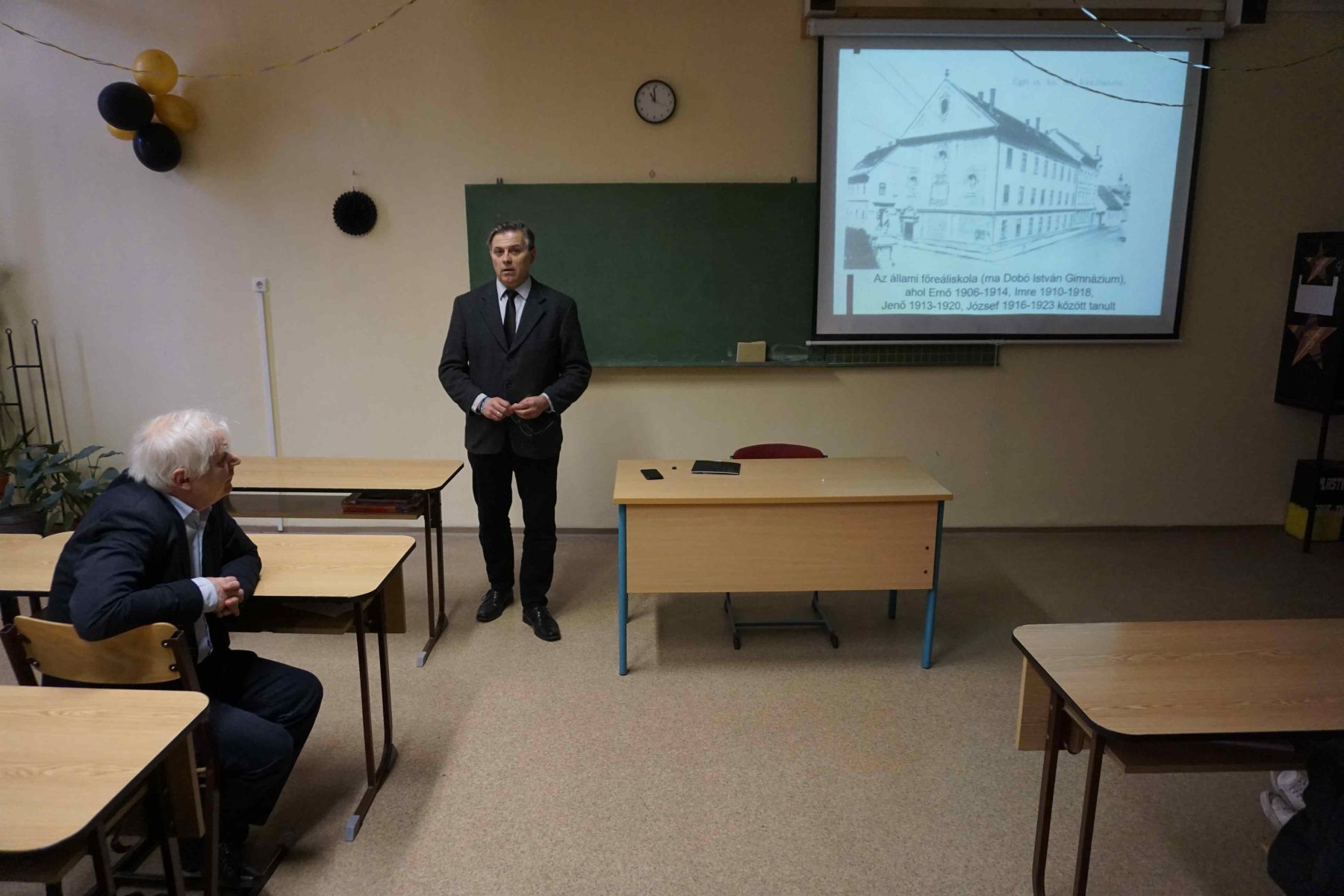 Ferenc Tamás tanár úr két volt diákunkat hívta vendégül, Márton Dominikát és Ferenc Andrást, akik képzőművészeti és építőművészeti pályájuk indulásáról meséltek az érdeklődőknek. A programot az „Ej, mi a kő!” rajzverseny is kiegészítette Petőfi Sándor születésének 200 éves jubileuma alkalmából.