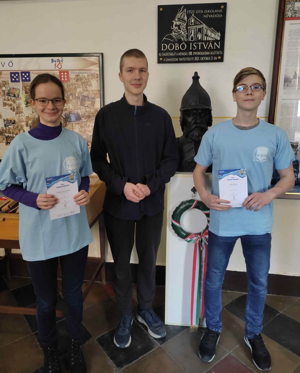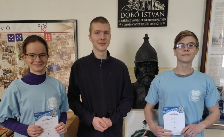 Idén, Kovács Dóra Viktória 11.B, Sütő Áron 11.A, Verba Dániel 11.A osztályos tanulóink képviselték iskolánkat. Ők voltak a legjobbak!