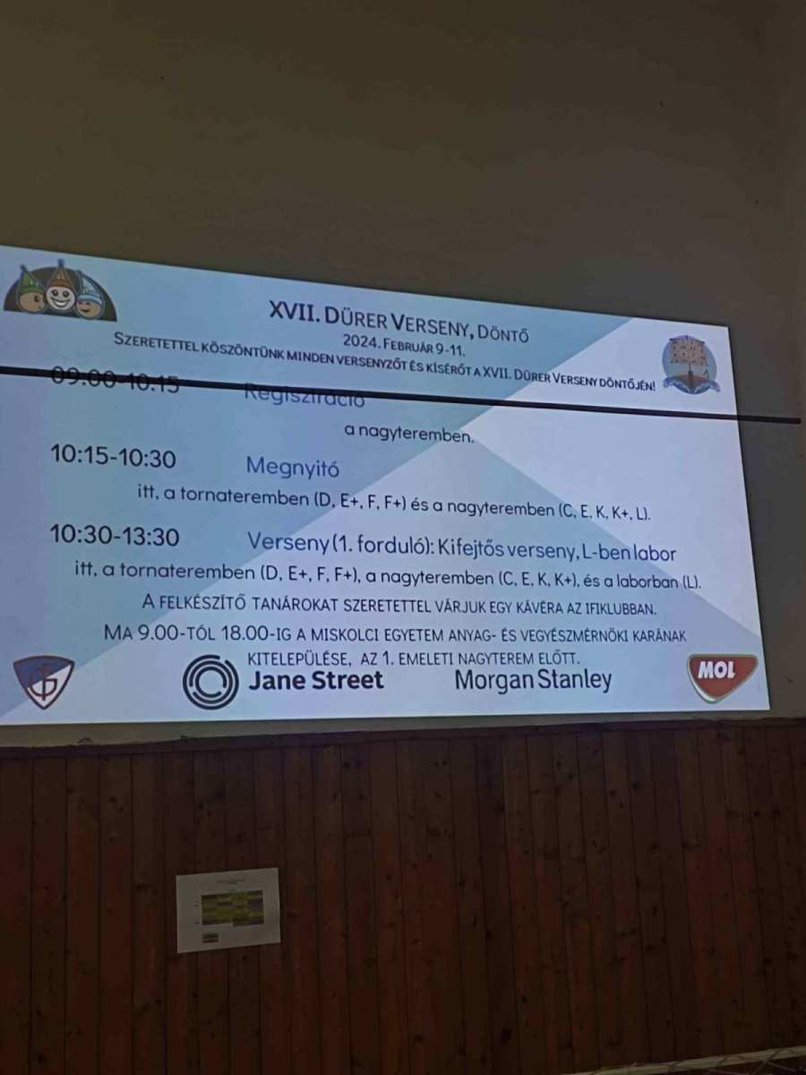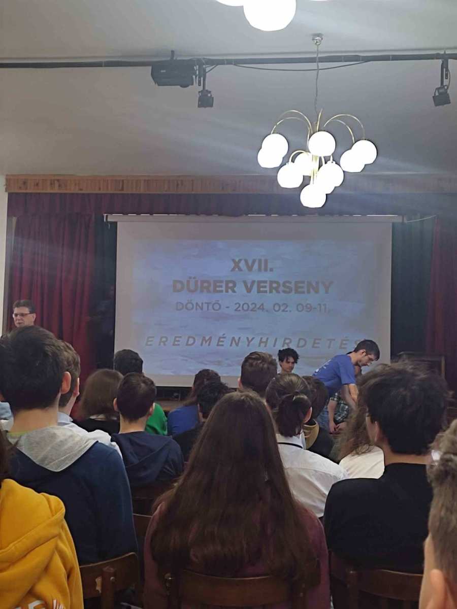 Iskolánk csapata minden évben eljut Miskolcra az országos döntőbe. Idén február 9-11 között zajlott a háromnapos verseny. Első nap kifejtős feladatokkal kellett megbirkózni, második nap pedig egy váltó versennyel. Közben számos érdekes matematikai játék, fejtörő, kvíz, akadályverseny késztette gondolkodásra a versenyzőket. Gyűltek a Dürer dollárok, melyet a licitboltban lehetett elkölteni.