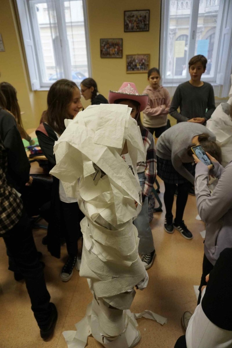 Iskolánkban idén 2022. október 28-án került megrendezésre a 7. és 8. osztályosok számára megszervezett Halloween party, amely során a résztvevők színes, kreatív jelmezekkel tették hangulatossá a programot. A változatos vetélkedőkben a diákok összemérhették tudásukat, melynek eredményeként 1. helyen a Bloody Mary csapata győzött. Összességében elmondhatjuk, hogy fergetegesen jól sikerült ez az angol hagyományokra épülő összejövetel.