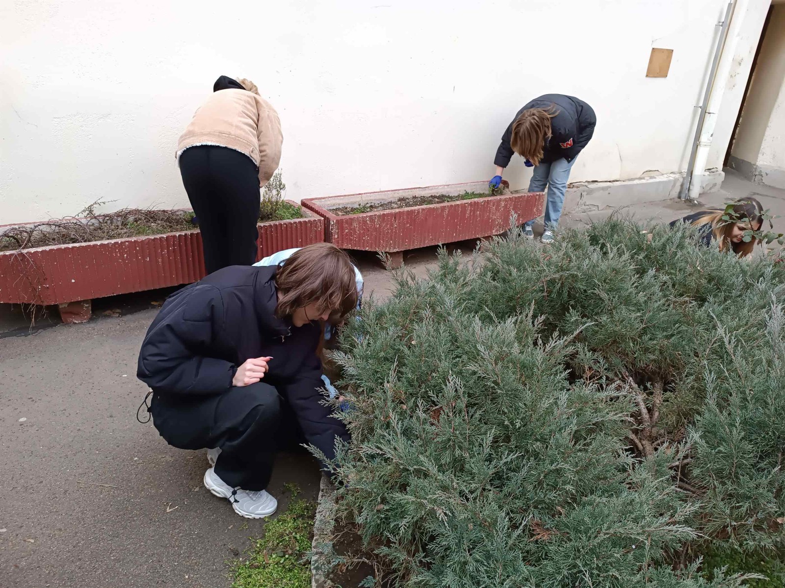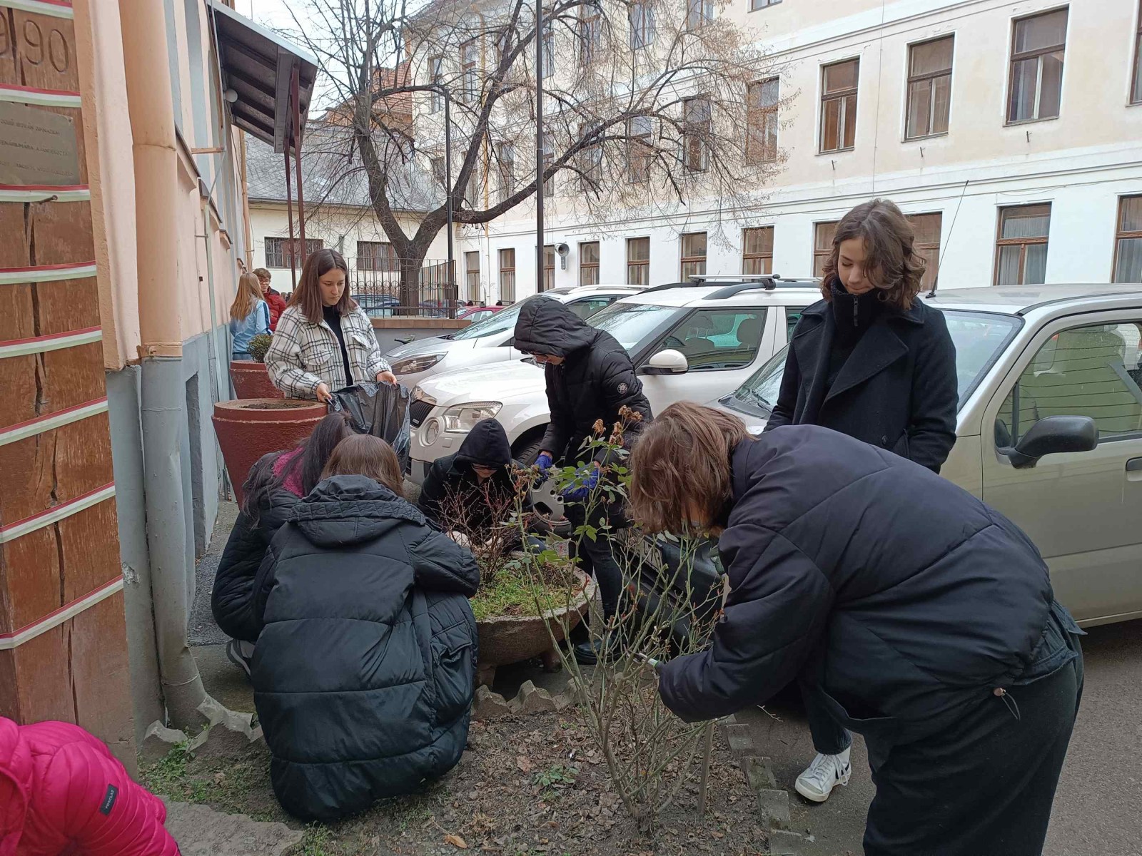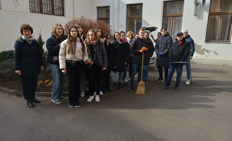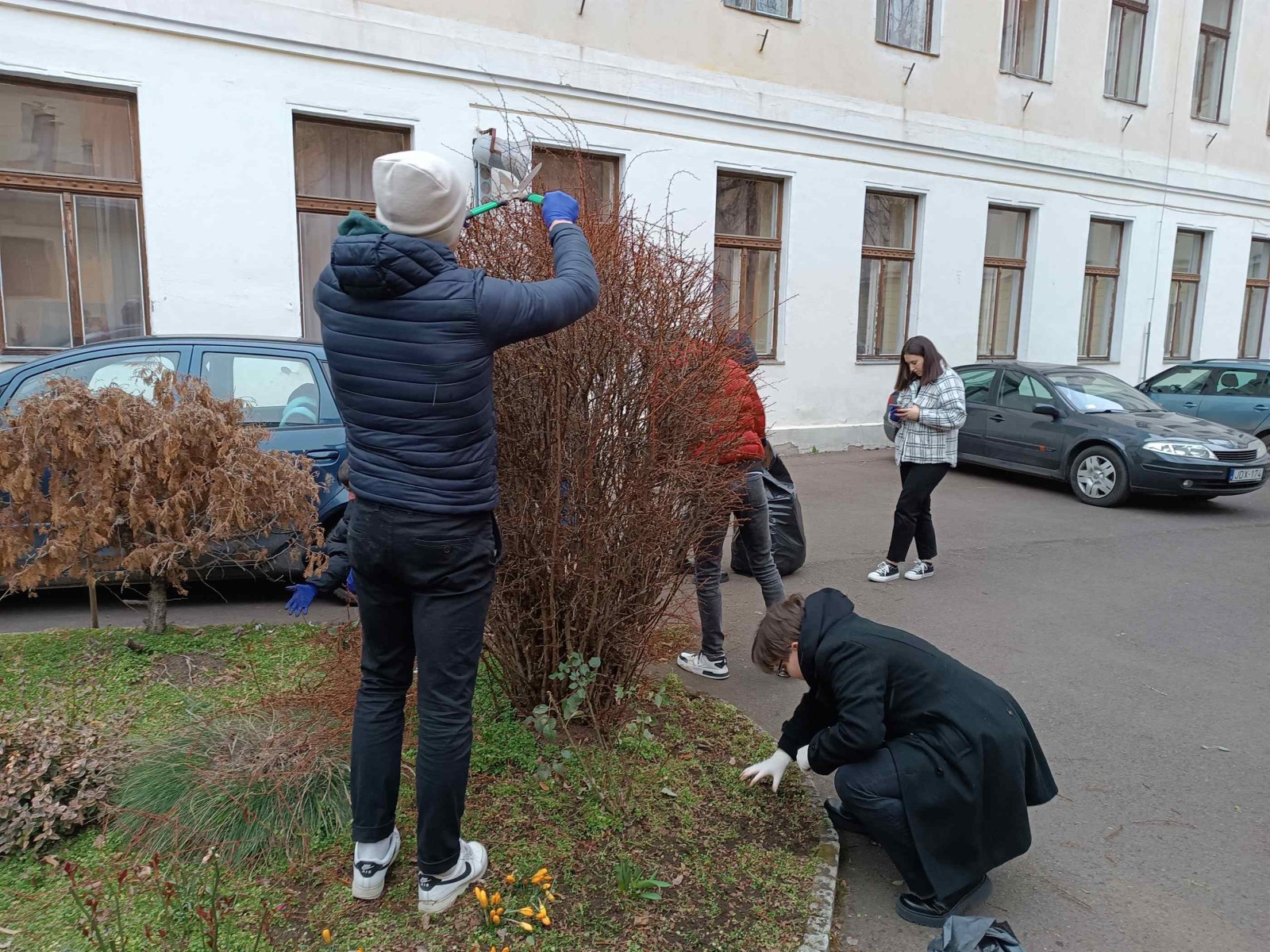 Fölszikkadt a téli sár, megjelentek az iskolakertben az első virágok, így eljött az idő, hogy a biológia tagozatosokkal karöltve rendbe tegyük a kertet. Az idén a 10.D osztály biológia tagozatosai szorgoskodtak az udvaron. Megmetszették a bokrokat, rózsákat, levendulát, kiszabadították a virágokat, a növényeket a gyomok szorításából.