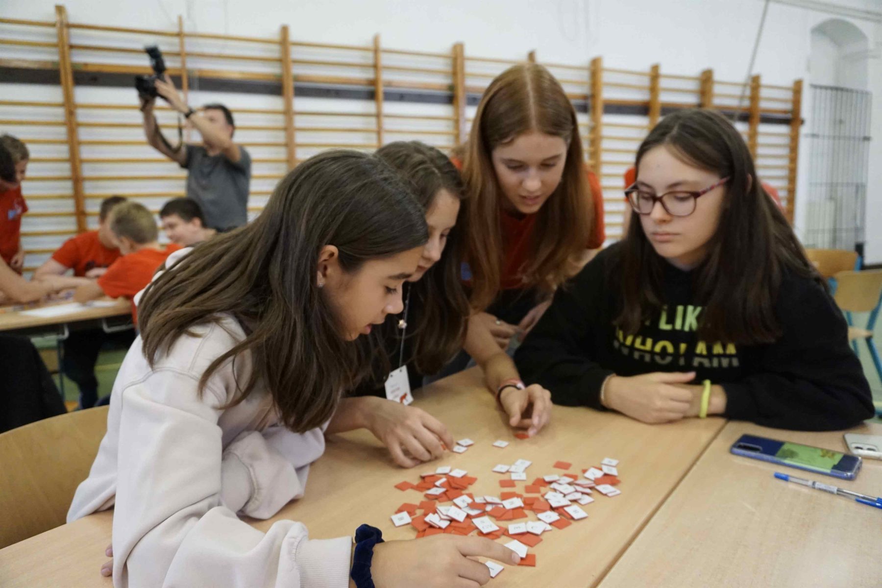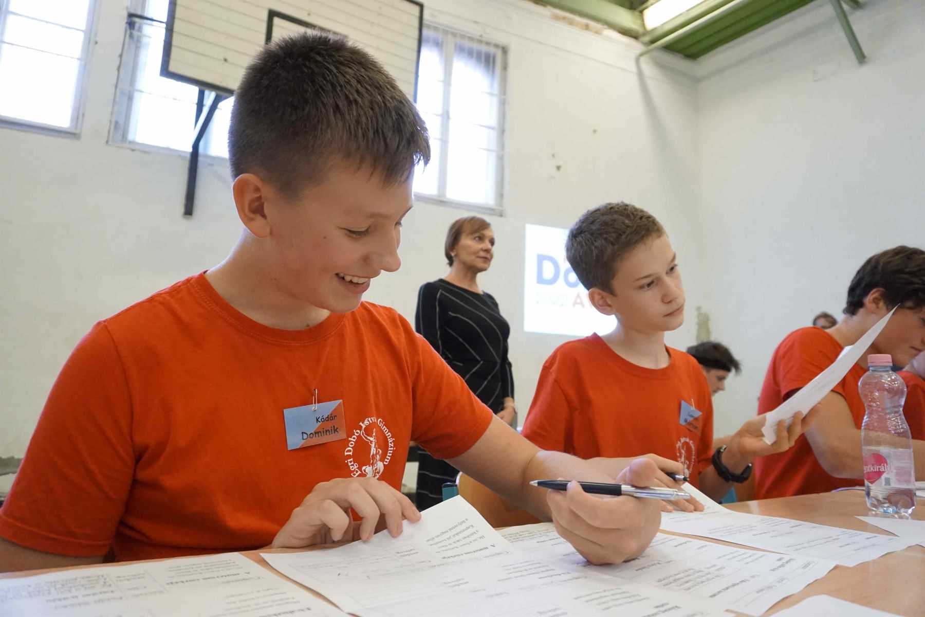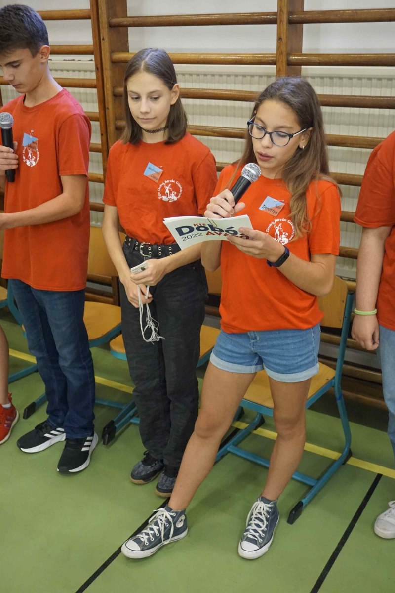 Mindannyian izgatottan vártuk ezt a délutánt. Az osztályteremben várakoztunk, ahol már a nyolcadikosok átvették a vezetést és ők kísértek át minket a tornaterembe ahol színeket húzattak velünk és ez alapján dőlt el, hogy ki melyik csapatba kerül az elkövetkező feladatok végrehajtásához. Két nyolcadikos tanuló volt a műsorvezető és minden csapatunk kapott maga mellé segítőket a felettünk járó osztályból. Különböző játékos feladatok megoldásával lehetett pontot szerezni. Először a Dobóval kapcsolatos kvíz kérdésekre kellett felelnünk, majd minden csapatból két tag az iskolában elrejtett tárgyakat kereste. Ez a feladat nagyon élvezetesnek bizonyult.