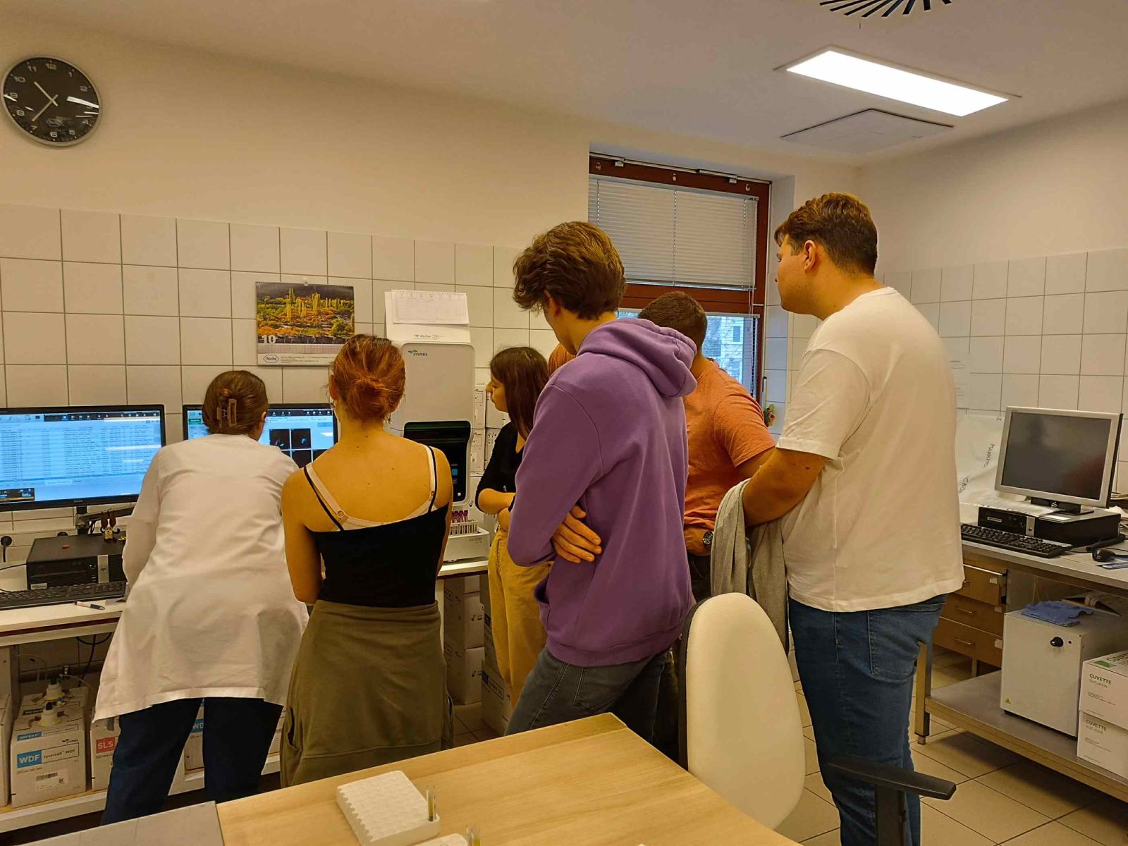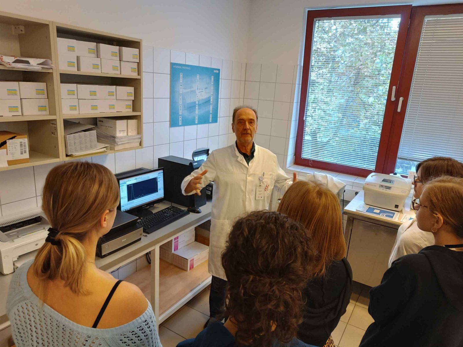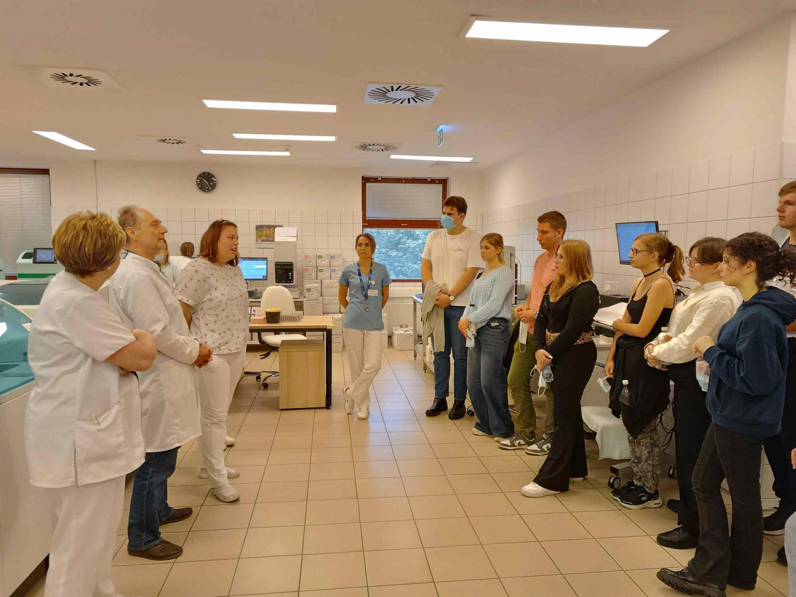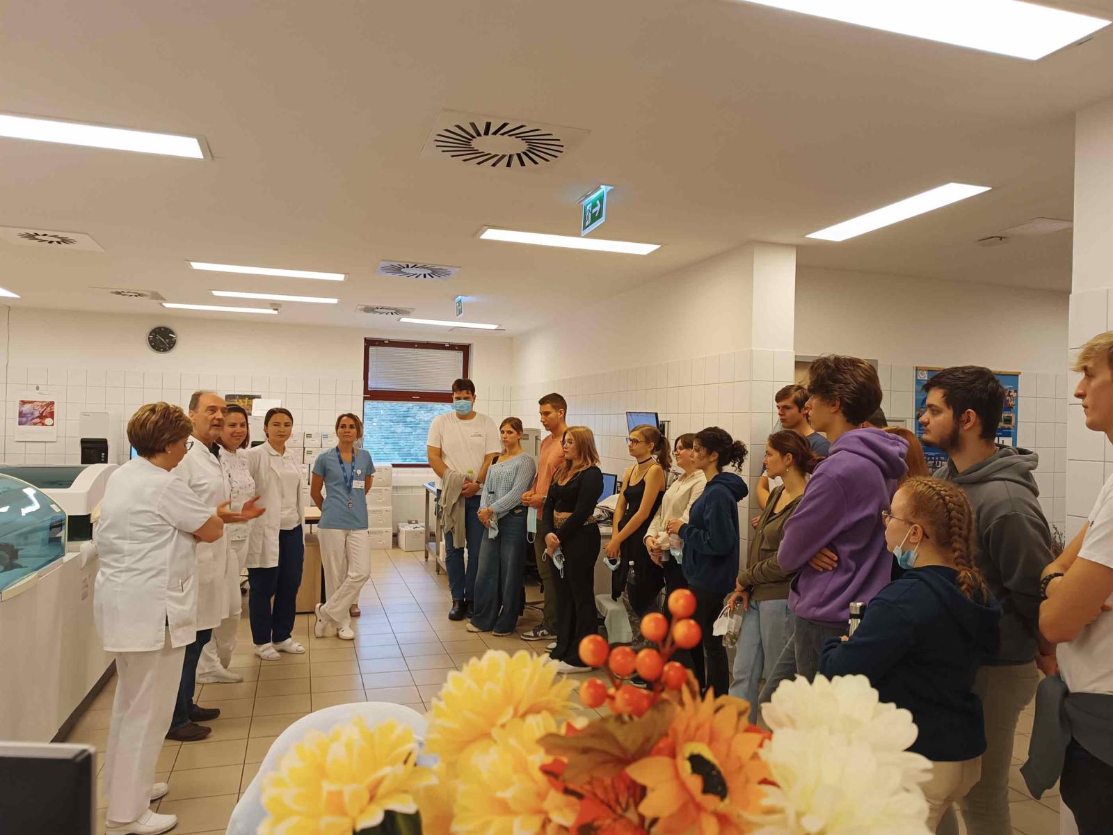 Az NTA keretében négy középiskola diákjai október 11-én kórházlátogatáson vettek részt az Egri Markhot Ferenc Oktatókórházban. A csoportot a Skill laborban Dr. Szoboszlai István főorvos úr fogadta, aki elmondta, hogy régen itt is folyt orvosképzés és a hagyományokat folytatva, szívesen fogadnak orvostanhallgatókat, rezidenseket kórházi gyakorlatra. A szakiskolai képzés aktív résztvevői, hiszen az elméleti és a gyakorlati ismeretek átadásában is közreműködnek. A látogatás során a diákok megismerkedtek a kórház működésével, a központi labor vér- és vizeletdiagnosztikájának jelentőségével, mélyítették anatómiai ismereteiket. Láthatták, hogy a szervi elváltozások, a vér és vizelet normál összetételtől való eltérése hogyan segíthet egy-egy betegség diagnózisának felállításában. A látogatás során munkahelyeket, munkaköröket láthattak, ami a pályaválasztási döntéseikben meghatározó lehet.