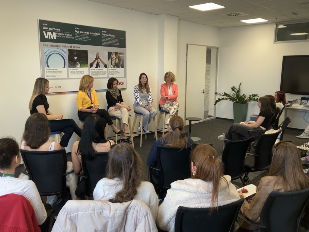 A fogadás után rövid programismertetővel indítottuk a napot, majd négy különböző osztály női vezetője mesélt a munkájáról, tapasztalataikról és arról, hogyan kerültek magasabb pozícióba. Ezután két csapatra osztottak bennünket. Az első csapat elindult a gyártás folyamatát megtekinteni, a második pedig kvízjátékkal és a híres elektromos kormánymű alkatrészeinek megismerésével töltötte idejét, ezt követően cseréltünk. Az ebédszünetet újabb női dolgozókkal töltöttük, akiktől rengeteg érdekes dolgot tudhattunk meg. Délután körökben ülve kérdezhettünk a továbbtanulási lehetőségekről és a korábban számunkra kevésbé ismert termelési területekről. A beszélgetés után ismét csoportokba rendeződtünk, és ezúttal a termékfejlesztési és a terméktesztelési részlegbe nyerhettünk betekintést, majd egy rövid pihenő keretében társasjátékokon keresztül ismerhettük meg a gyár működését. A napot egy lezáró értékeléssel fejeztük be, ahol kiosztották az okleveleinket és mindenki személyre szóló ajándékot kapott.