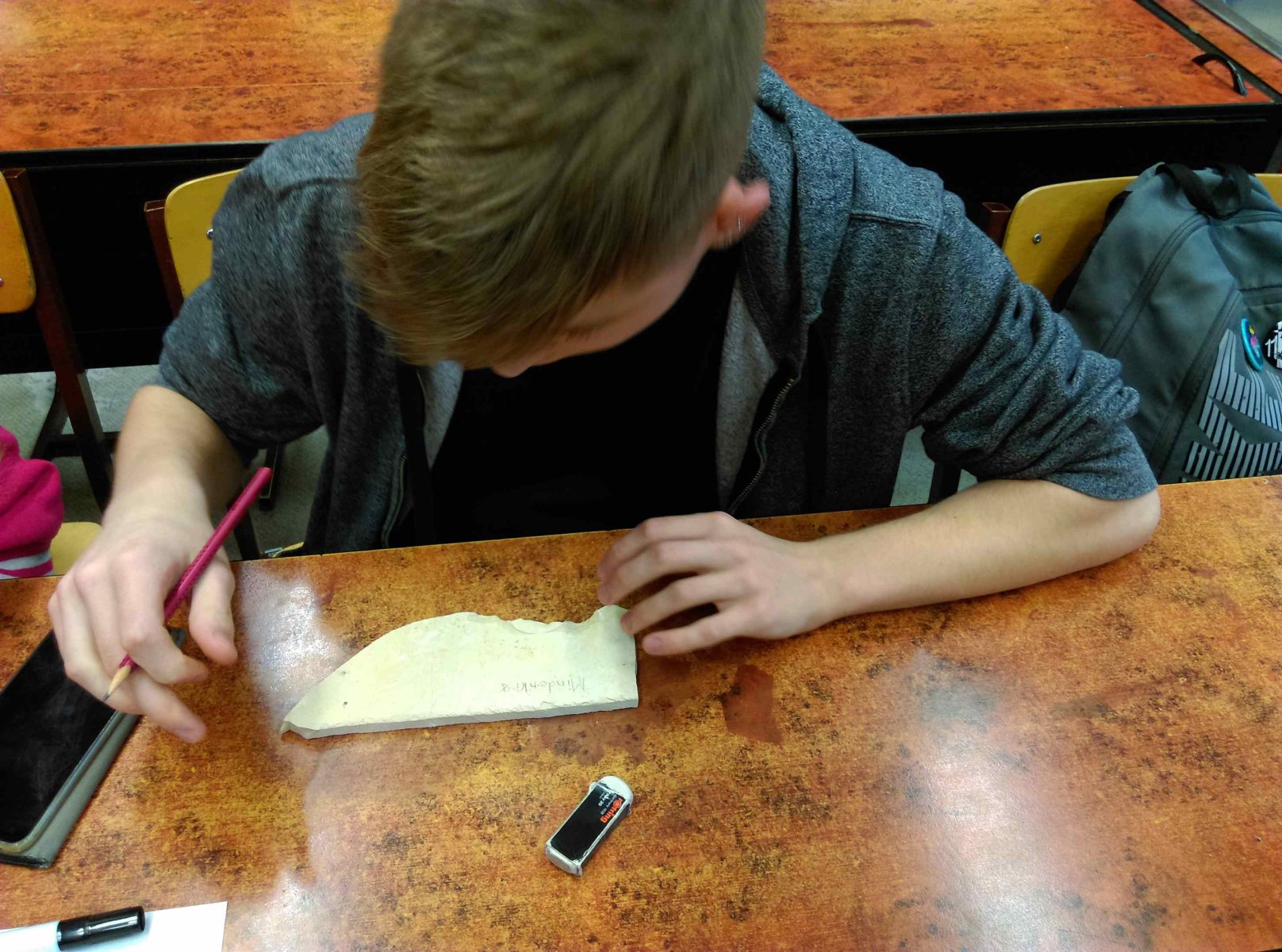 A TT műhely ezen foglalkozásának középpontjába a palás kőzetek kerültek. Megtudtuk, hogy milyen sokrétű volt a felhasználása a korábbi évszázadokban. Például tetőfedésre használták, a gyerekek az iskolában palatáblára vésték betűiket.