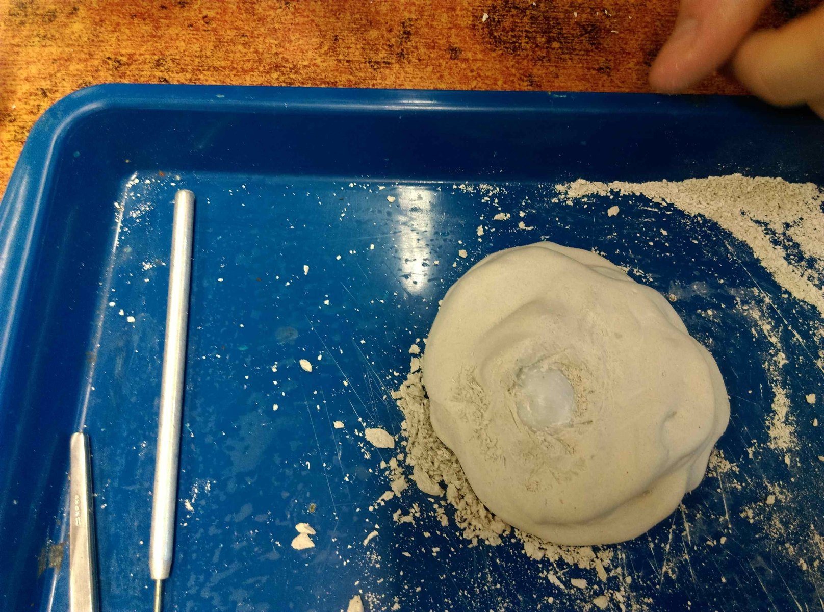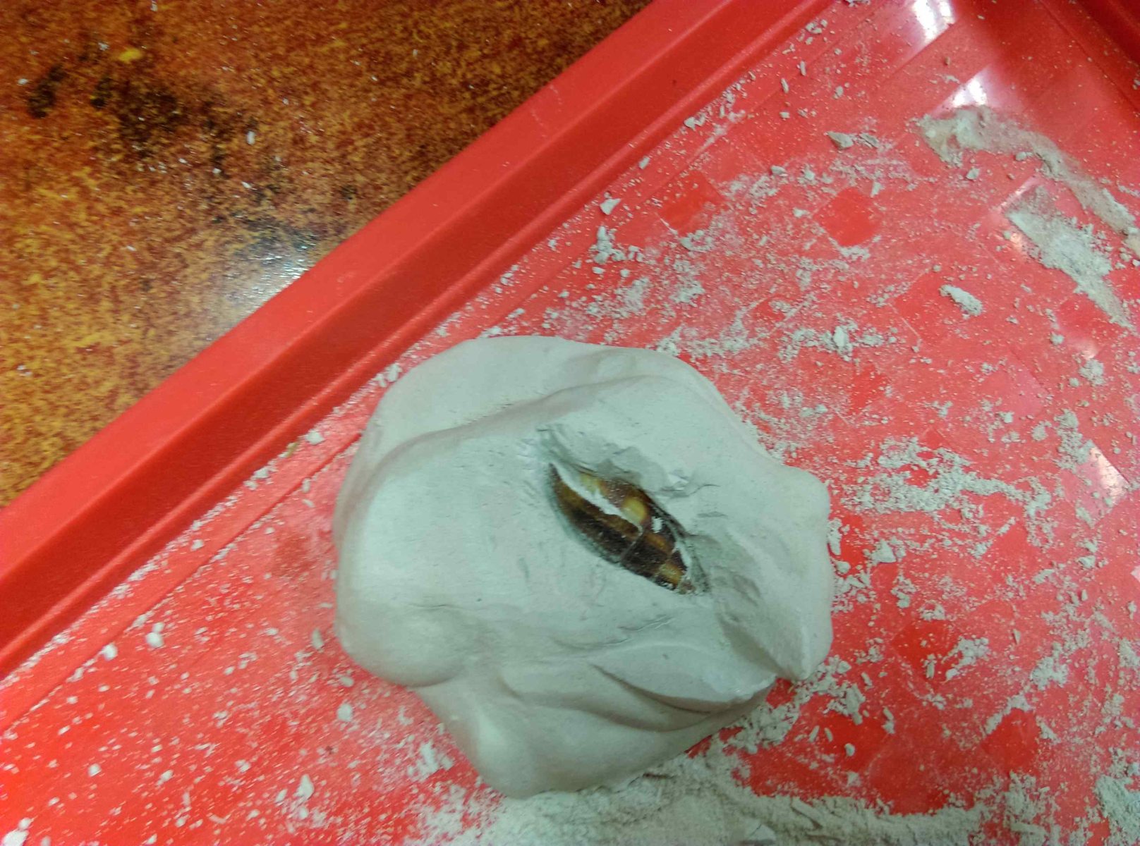 Mivel a palák gyakran rejtenek ősmaradványokat, kipróbáltuk, hogyan lehet feltárni, kipreparálni őket. Türelmet próbáló, fáradtságos munka volt!