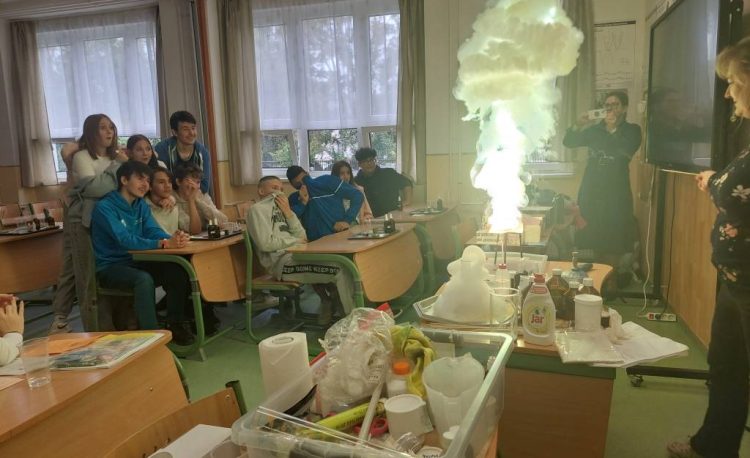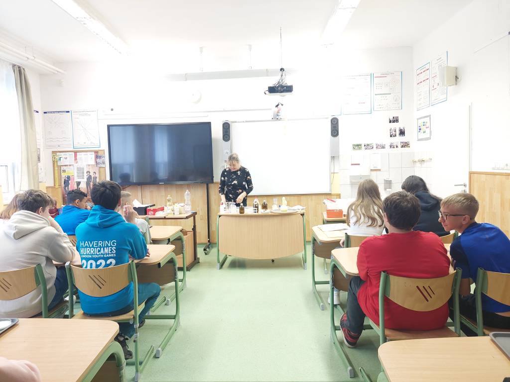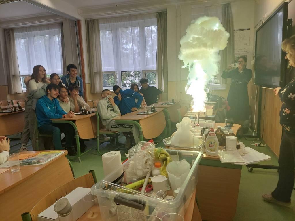 Lelkes kis csapatunk október 10-én a Szilvásváradi Jókai Mór Általános Iskolába látogatott, hogy a nyolcadikosok számára egy emlékezetes kémiaórát tartson. Célunk az volt, hogy bemutató és tanulókísérletek révén szemléletesebbé, érthetőbbé tegyünk a kémia egy szeletkéjét. Szinte már törvényszerűen az elefántfogkrémmel kezdtünk, volt durranógáz, vízbontás és szivárványos tej is.