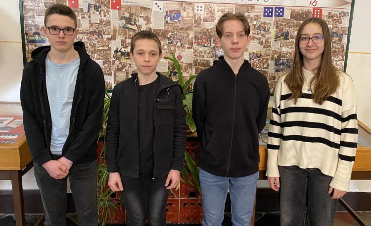 Tihor Laura 7.a, Bora Ádám 8.a, Magyar Levente Árpád 8.a, Tóth Domonkos 8.a