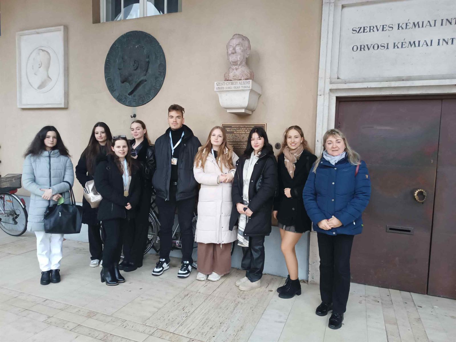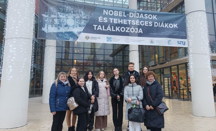 2023. december 13-15 között iskolánk 8 tanulója Dr. Veresné Kis Krisztina és Dr. Prokainé Hajnal Zsuzsa tanárnő kíséretével ellátogatott a Nobel-díjasok és tehetséges diákok XXI. találkozójára Szegedre. Igen színvonalas tudósok, orvosok, kutatók előadásait hallhattuk, emellett mélyrehatóan kérdezhettük őket kutatásaikról, életútjukról, vagy akár személyes tanácsot kérhettünk. Az ország jónéhány egyeteméről érkeztek hallgatók, hogy beszámoljanak nekünk eddigi kutatási eredményeikről. Az előadások témái igen széleskörűek voltak, mint pl. a mikroRNS-ek jelentősége a daganatokban, oxigénhiány következménye a retinában, antibiotikum rezisztencia gátlása. Randy W. Schekman és Thomas C. Südhof Fiziológiai és Orvostudományi Nobel-díjas kutatókat hívták meg előadást tartani, akik eredményeiket osztották meg velünk. Ole Petersent 80. születésnapja, Sahin-Tóth Miklóst 60. születésnapja alkalmából kapott meghívást a konferenciára.