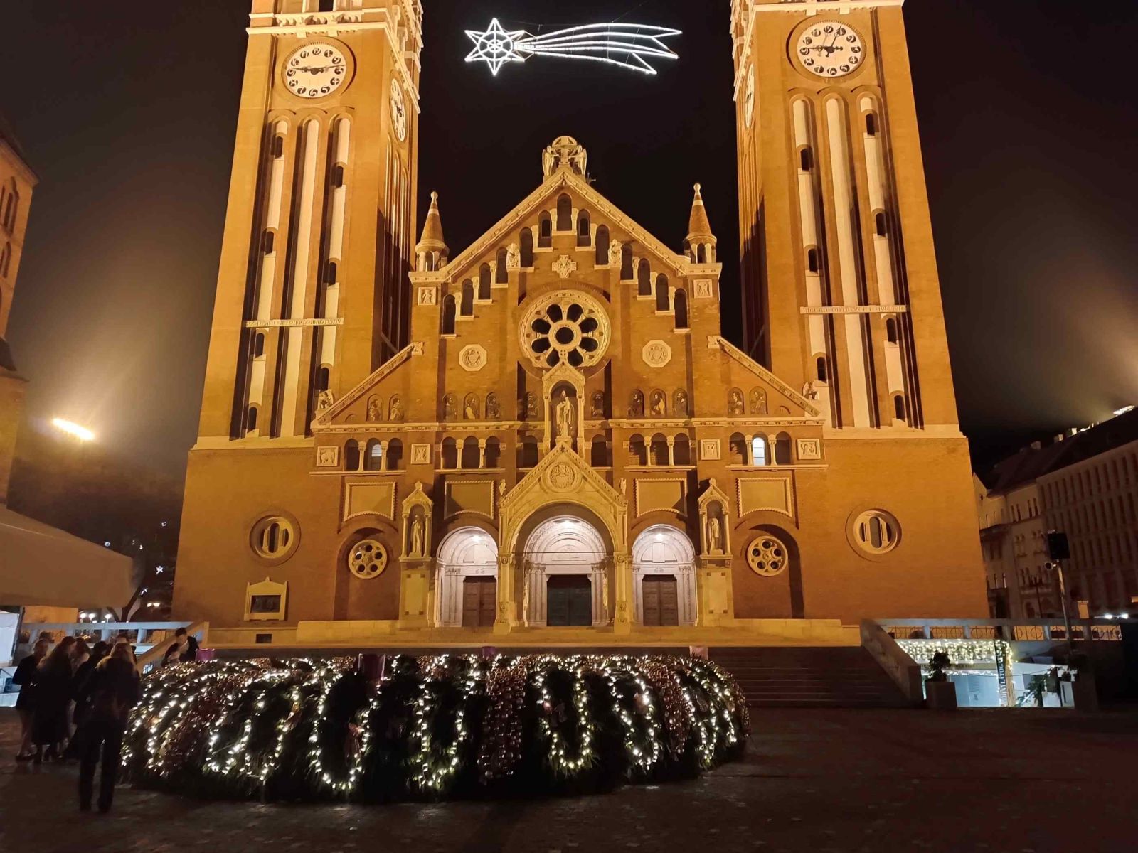 A szobánk ablakából nyíló panoráma, az ínycsiklandozó ételek mellett, jutott egy kis időnk felfedezni Szeged néhány látványosságát, köztük az adventi vásárt is.