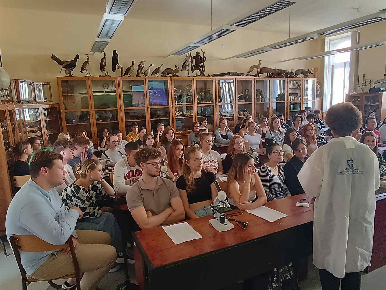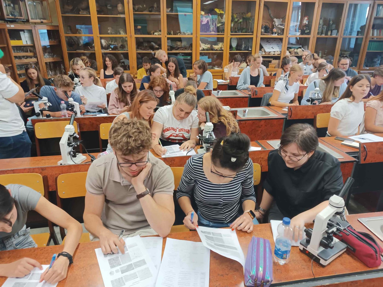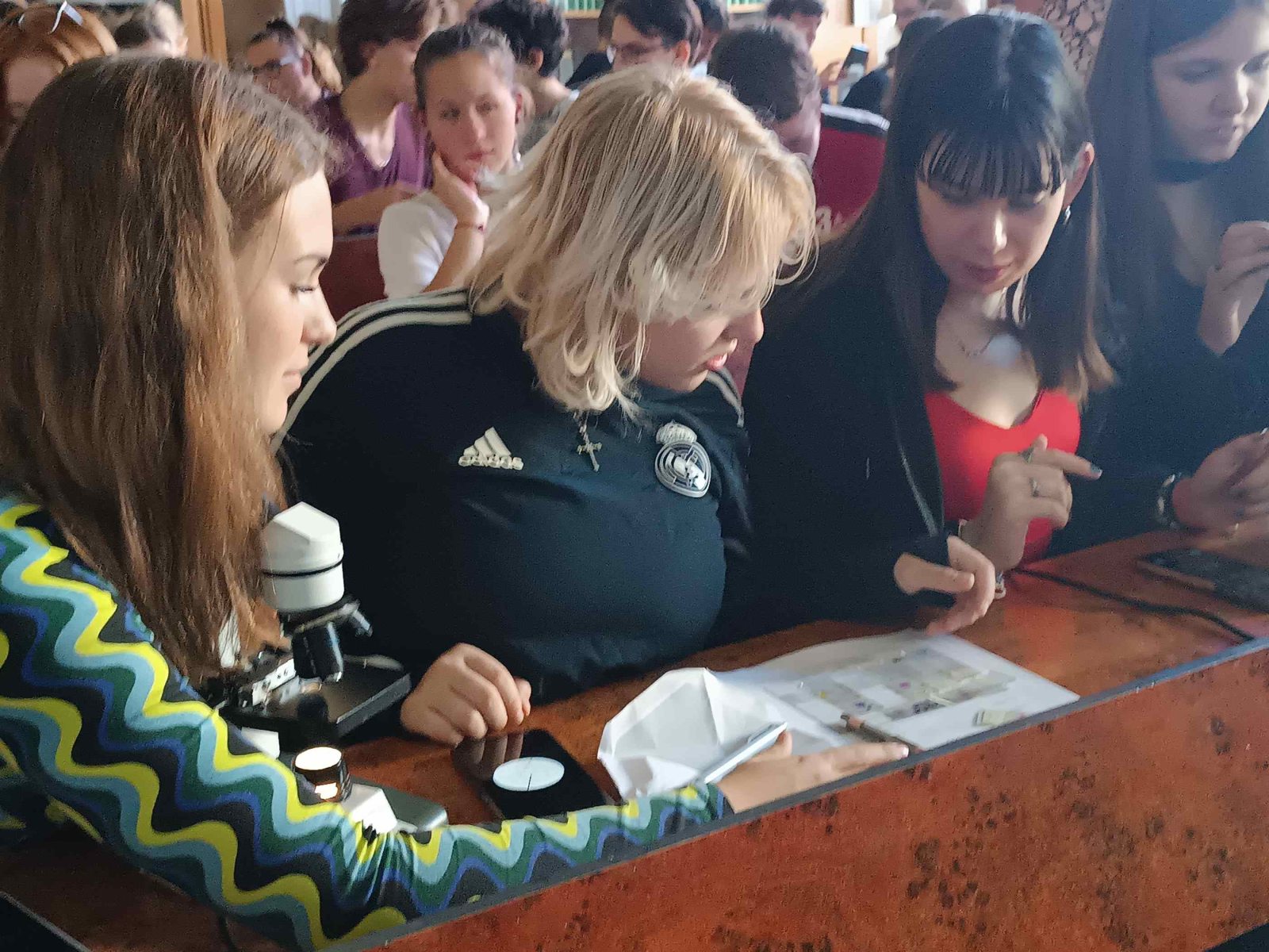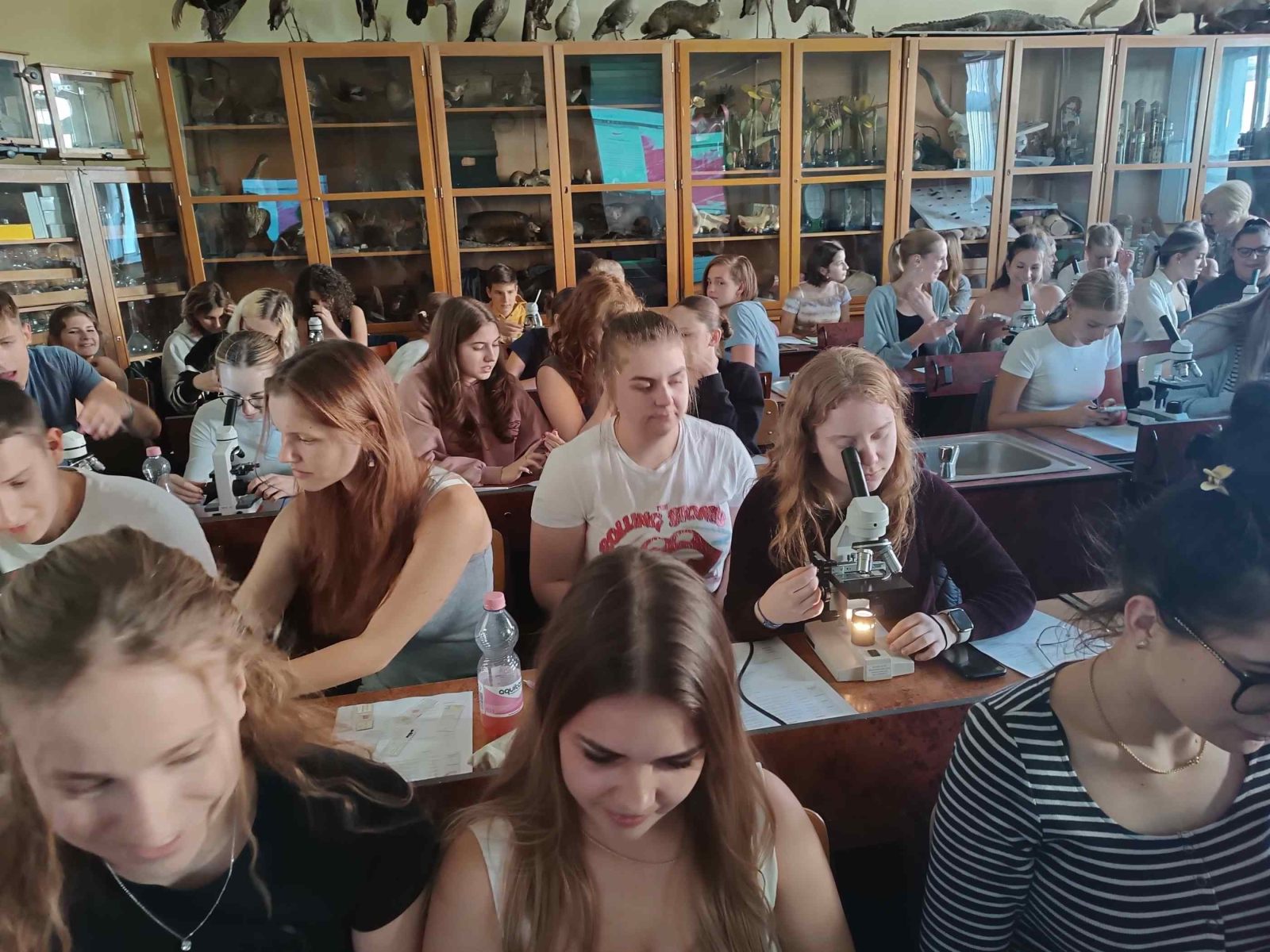 Az idei tanév első foglalkozására szeptember 20-án került sor. A nagyszámú diáksereg először a Nemzeti Tudósképző Akadémia céljait, szervezeti felépítését és a középiskolás diákok lehetőségeit ismerte meg. Ezután Bucsi Tünde végzős Dobós tanuló beszélt az NTA-s nyári tábori élményeiről és a szegedi országos laborgyakorlatáról. A résztvevők az állati és emberi szövettani ismeretei felidézése után láttak hozzá a vizsgálatoknak. Különböző szervekből vett szövettani mintákat elemeztek, figyeltek meg mikroszkóp alatt. A gyakorlat végén feladatlapot töltöttek ki, ahol ellenőrizhették mennyire váltak gyakorlottá a szövetek, szervek felismerésében. A legjobbak apró jutalomban részesültek. A jó hangulatú foglalkozás ismerkedésre is lehetőséget adott, hiszen a város hat középiskolájából érkeztek diákok. Legközelebb kórházlátogatáson vehetnek részt a végzős tanulók.