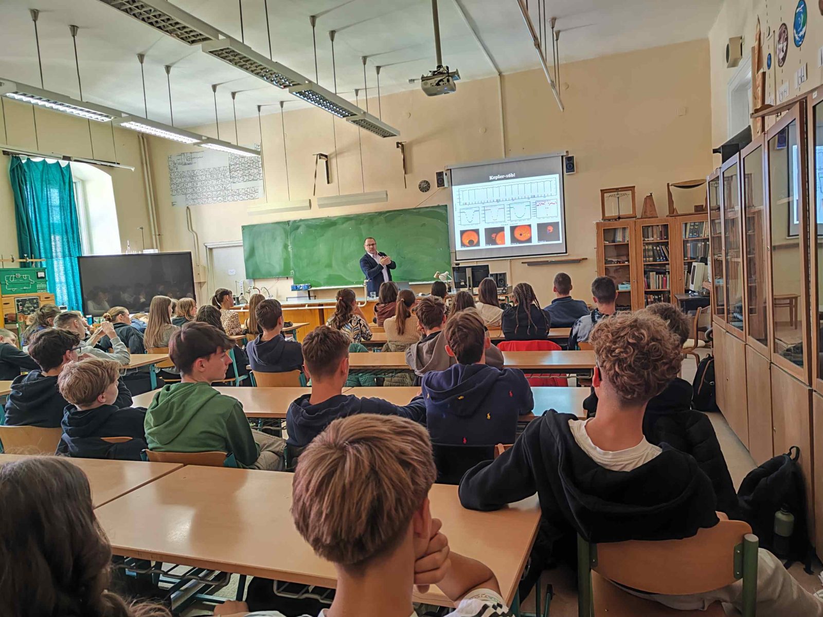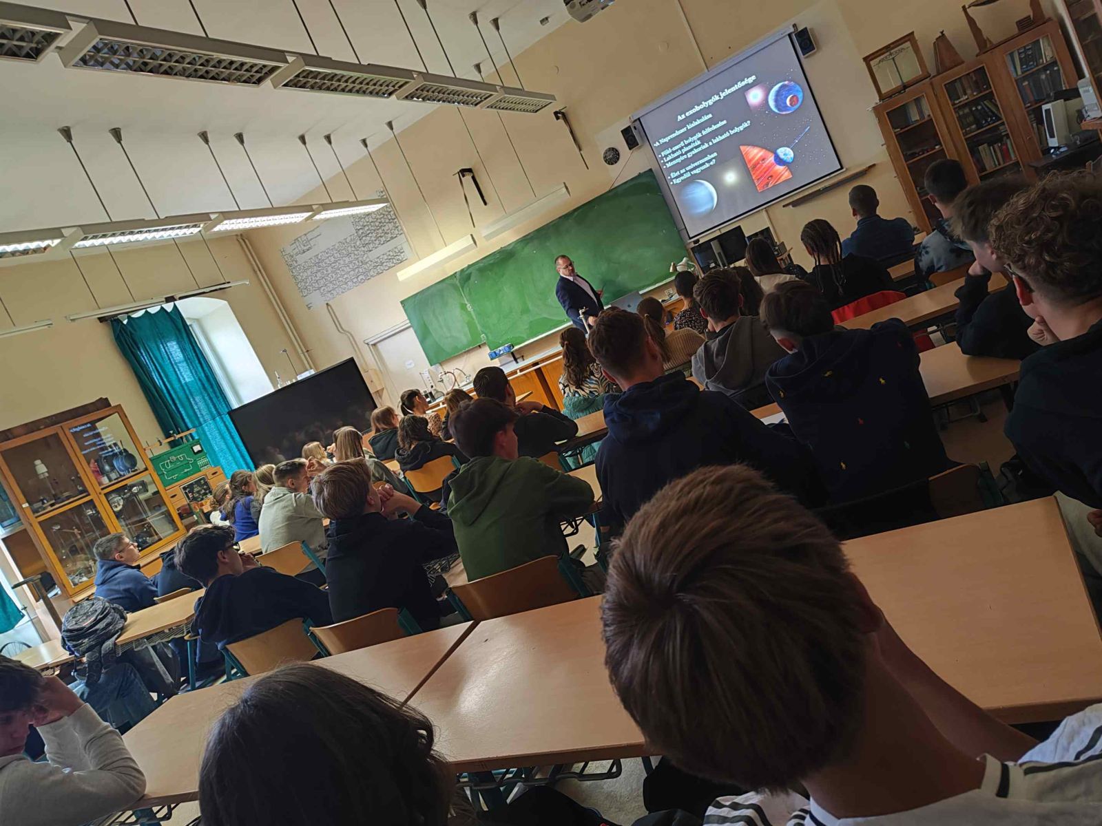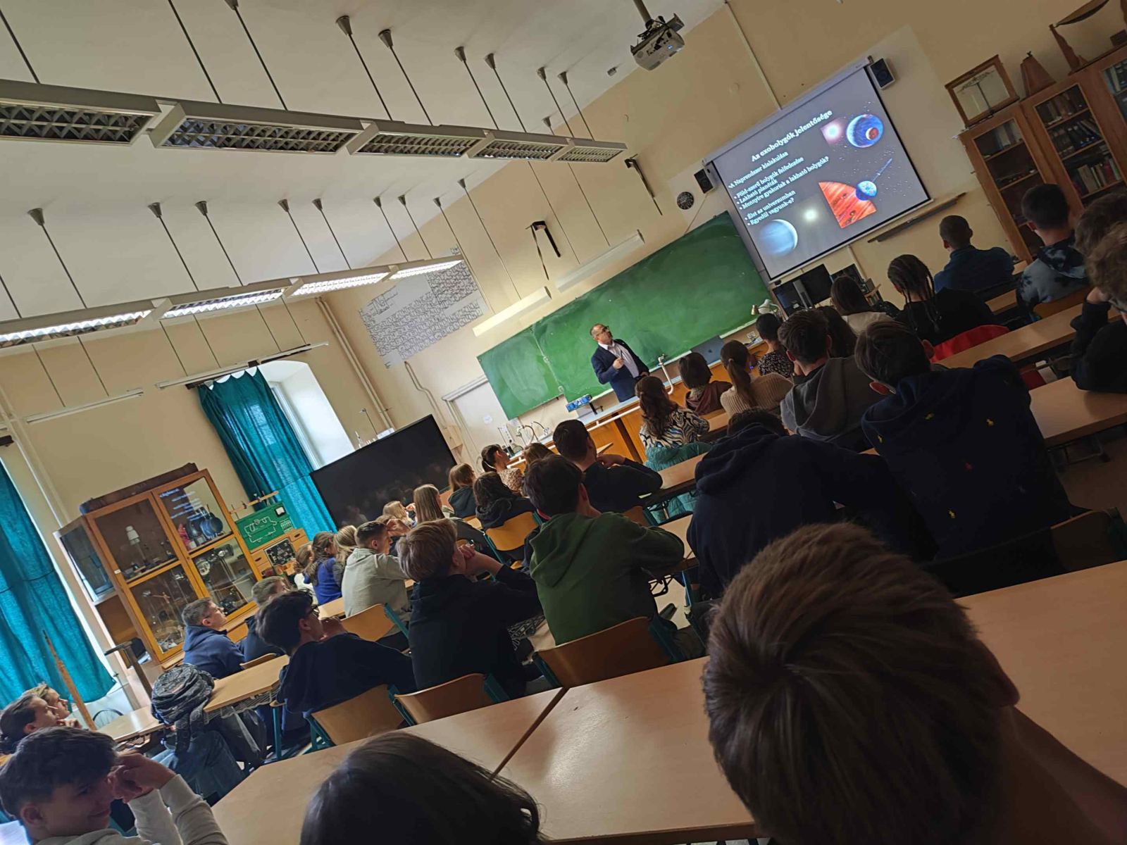Az izgalmas téma, az előadó lelkesedése és szemléletes magyarázatai magával ragadták a hallgatóságot. A diákok érdeklődve hallgatták a csillagászat legújabb felfedezéseit, és az előadás végén számos kérdést tettek fel a kutatónak.