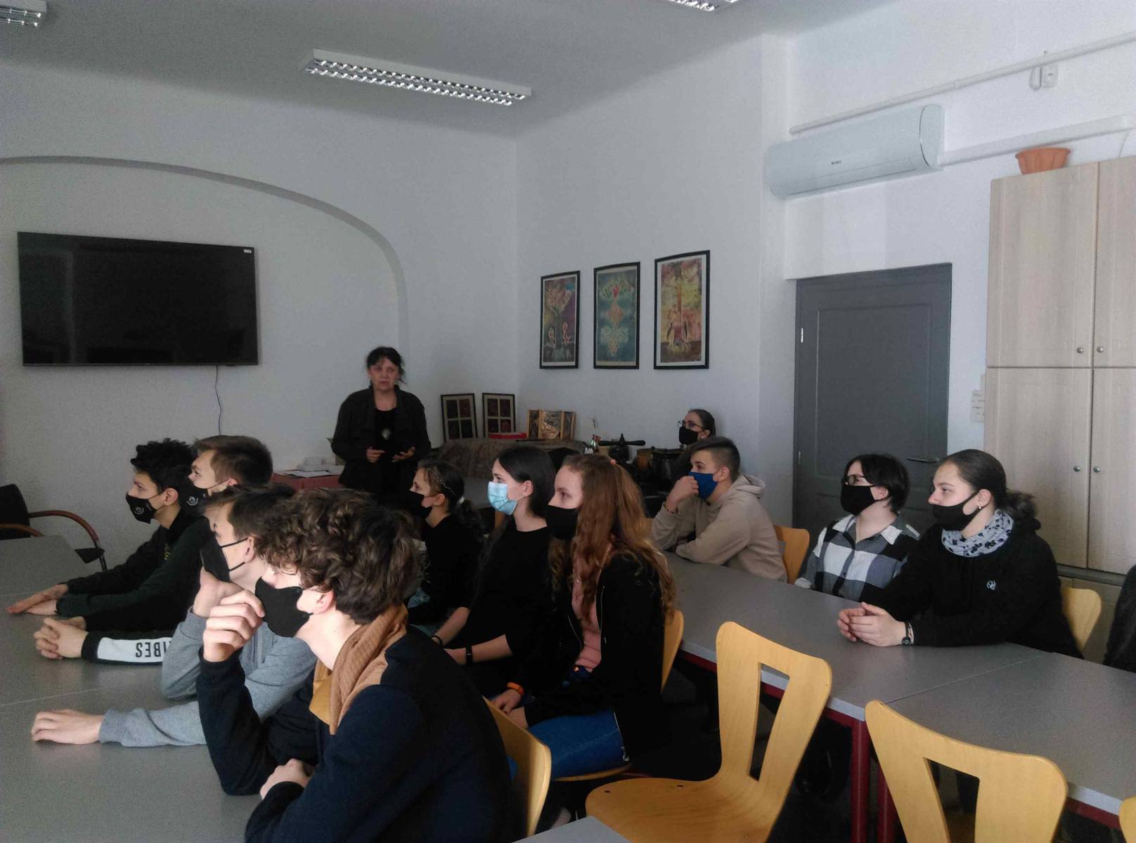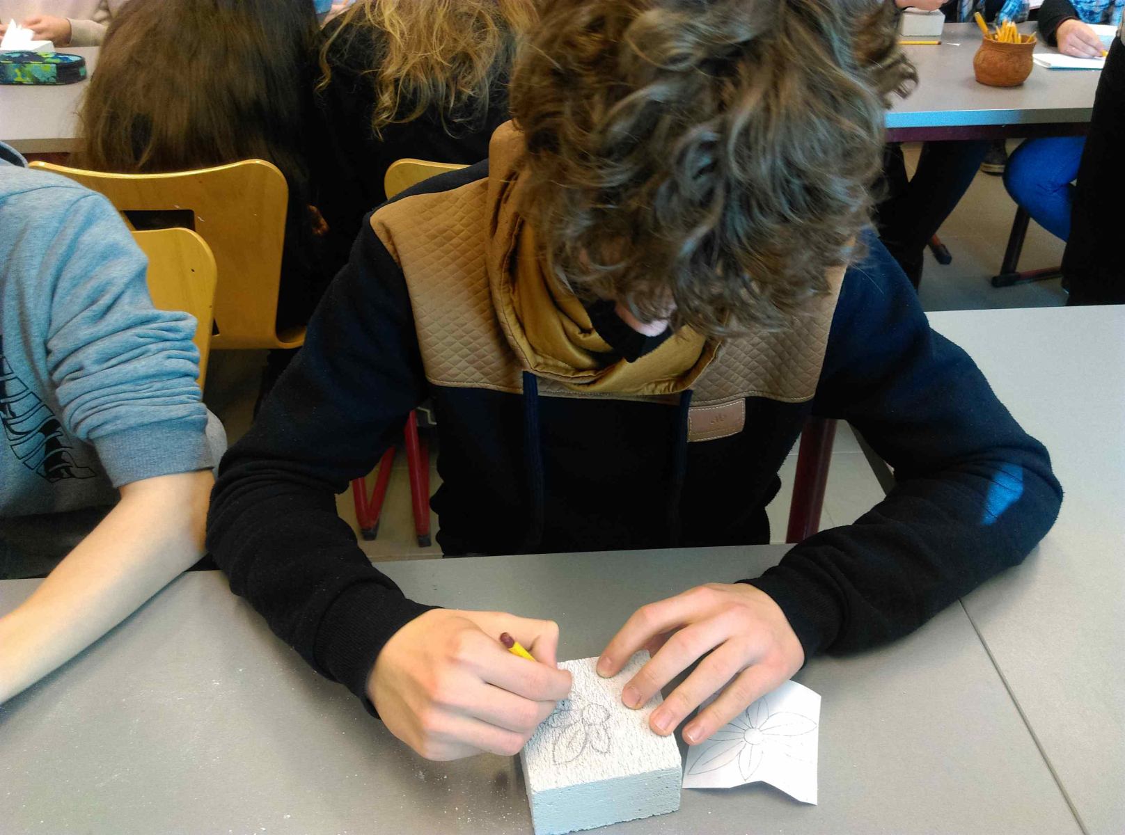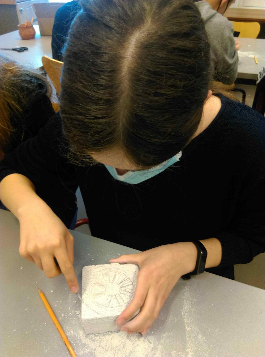 Ezen a foglalkozáson az Egri Dobó István Vármúzeum Várműhelyében múzeumpedagógiai foglalkozáson vettünk részt, amelynek témája a „Mesélő kövek” voltak. Először egy előadáson ismerkedtünk meg a kőfaragó mesterséggel, az építőműhelyek, a céhek alakulásával. A faragott kövek meséltek arról, hogy milyen mesterségbeli tudással rendelkezhettek az egri vár kőfaragói. Ezután mi is kipróbáltuk, hogy mennyire lehetett nehéz dolguk a kőfaragó mestereknek, motívumokat véstünk ytong téglákba.