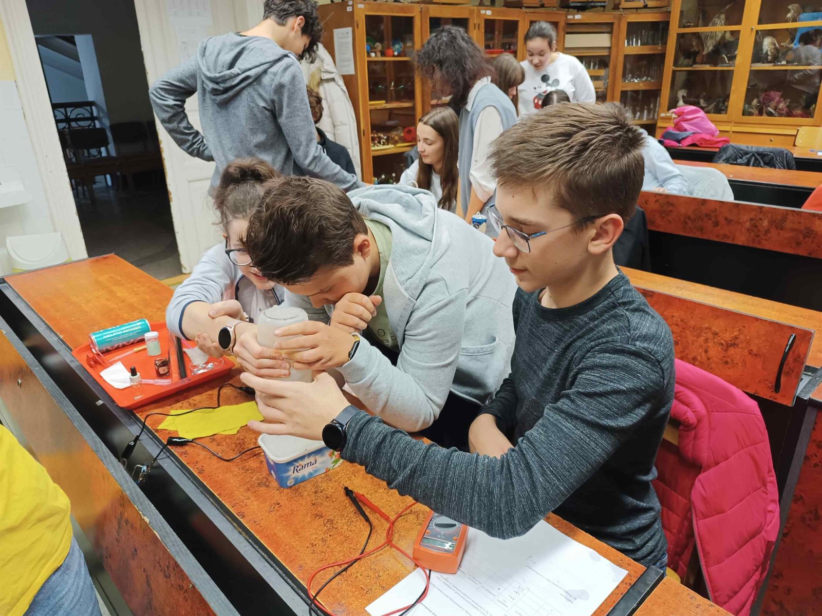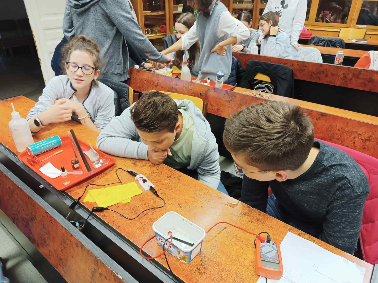 Miért zenél a bili, ha folyadék került bele? Miért húzza el a vízsugarat az ebonit rúd? Hogyan vezeti a víz az elektromosságot? Miért ne próbáljunk eloltani elektromos tüzet vízzel? Ilyen és ehhez hasonló kérdésekre kaptunk választ a foglalkozáson. Érdekes és élvezetes volt!