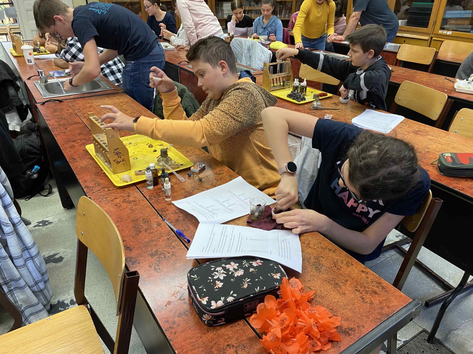 A TT Műhely 2022. október 4-ei „A napfény íze” című foglalkozásán a fotoszintézis folyamatát ismertük meg. A Magyarország térképen megkerestük híres borvidékeinket, azok jellegzetességeit. Az egri borvidékhez kapcsolódóan helyi szőlőt vizsgáltunk, kimutattuk cukortartalmát és a héjában lévő ásványi anyagokat.